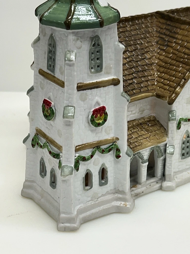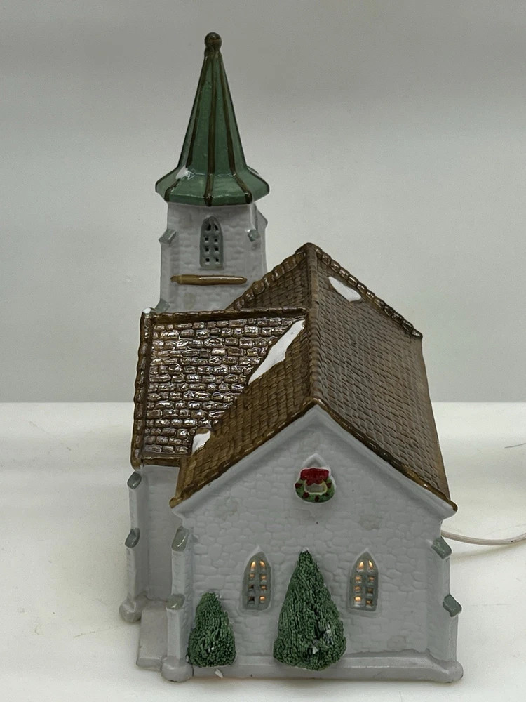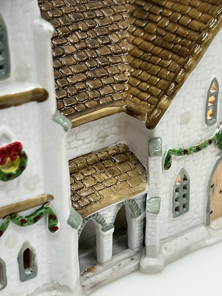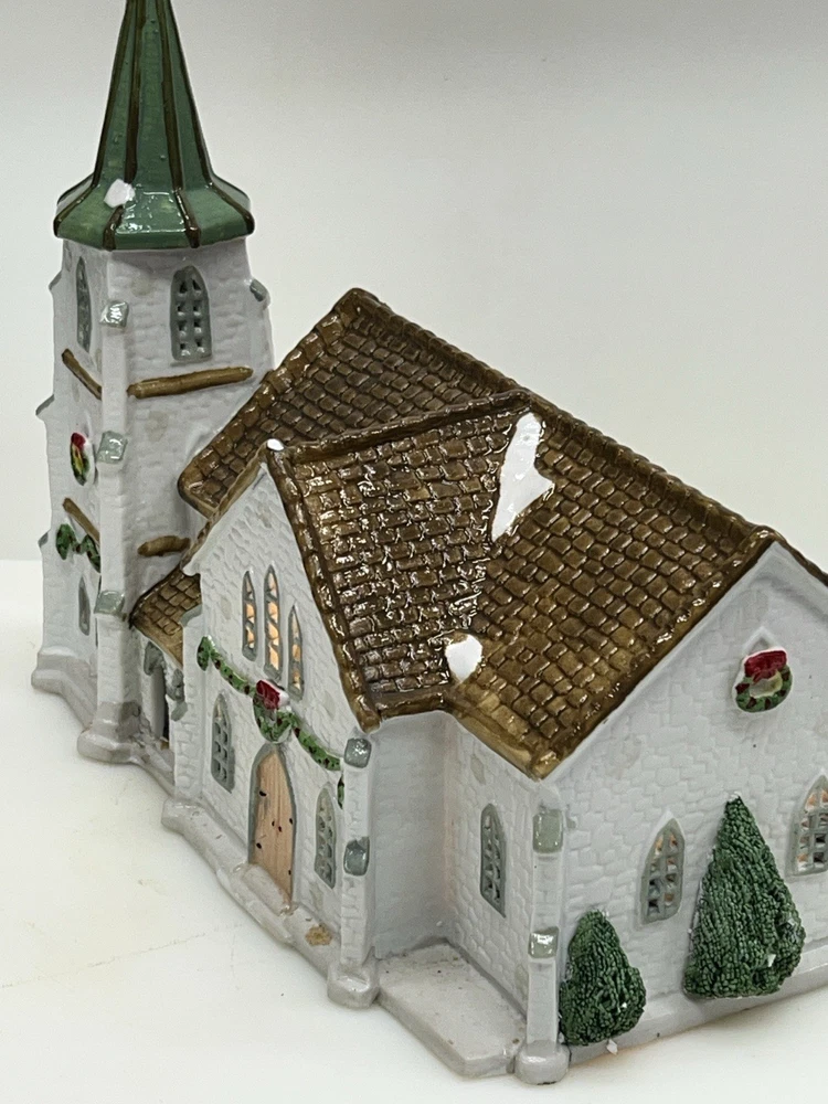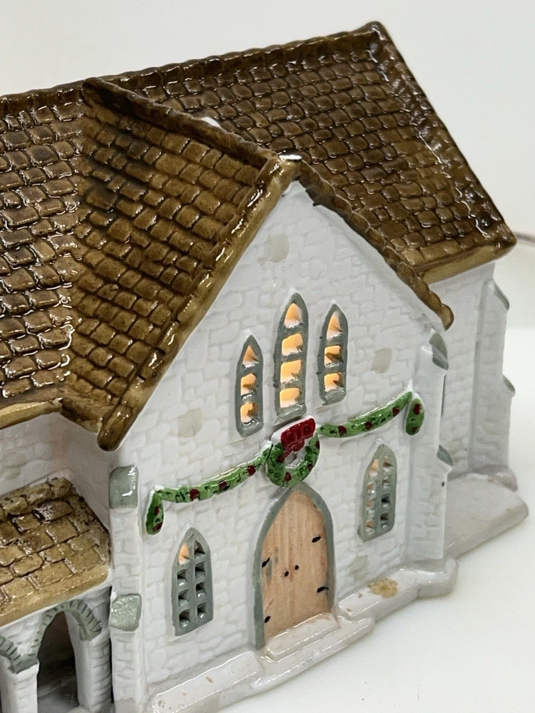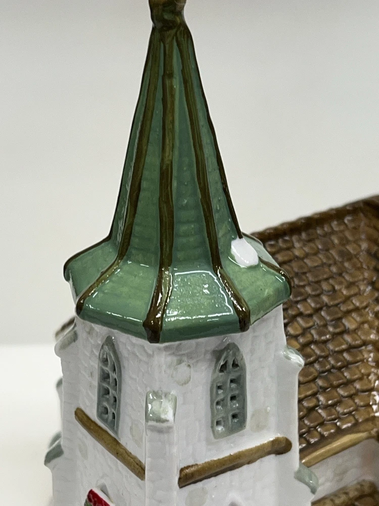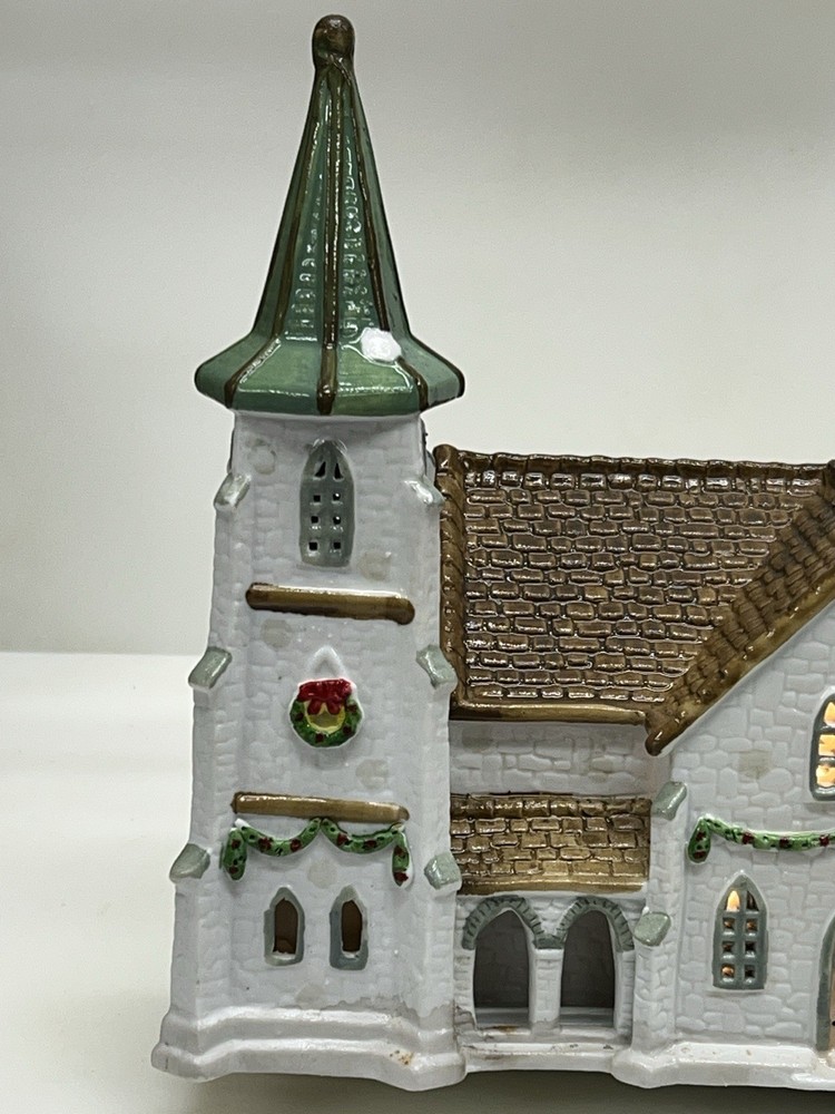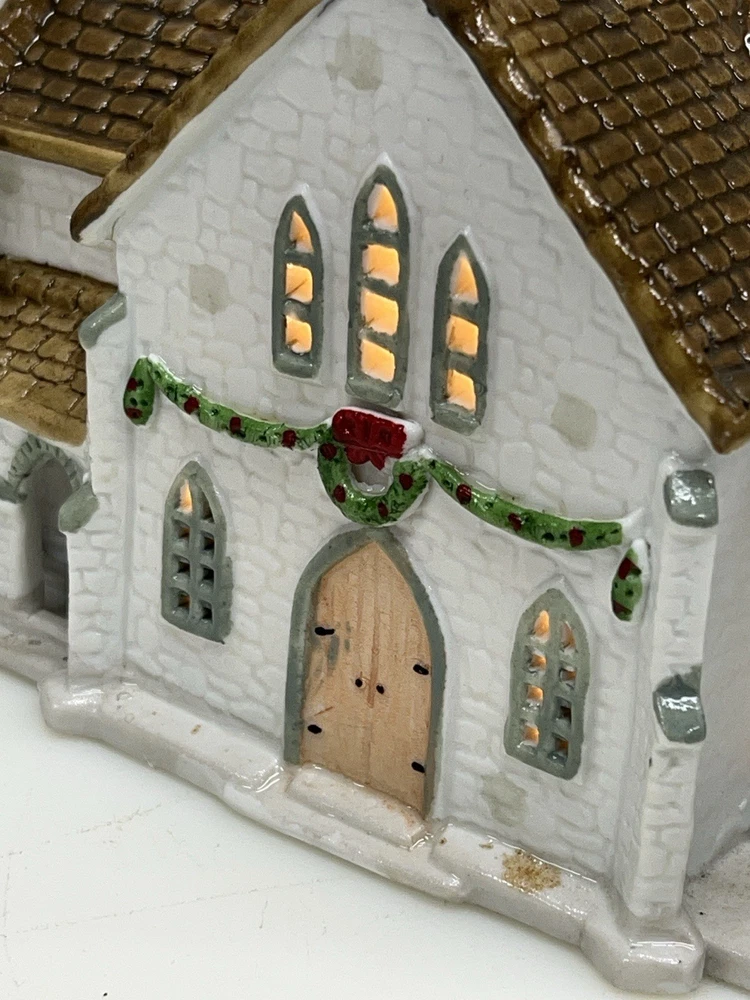 The Lemax Hearthside Village Porcelain CHURCH Christmas Village House Vintage 1992 is a beautifully crafted collectible piece perfect for any Christmas village display. This medium-sized, hand-painted cathedral features illuminated windows and is part of the retired Hearthside Village collection. Made of porcelain and showcasing a traditional style with a multicolor finish, this vintage building from 1992 is a charming addition to any seasonal decor. Perfect for adults and suitable for indoor use, this vintage piece from China is a must-have for collectors of Christmas villages. 1992 !! Excellent condition . Comes with all original packaging including the cord and light SouthCt