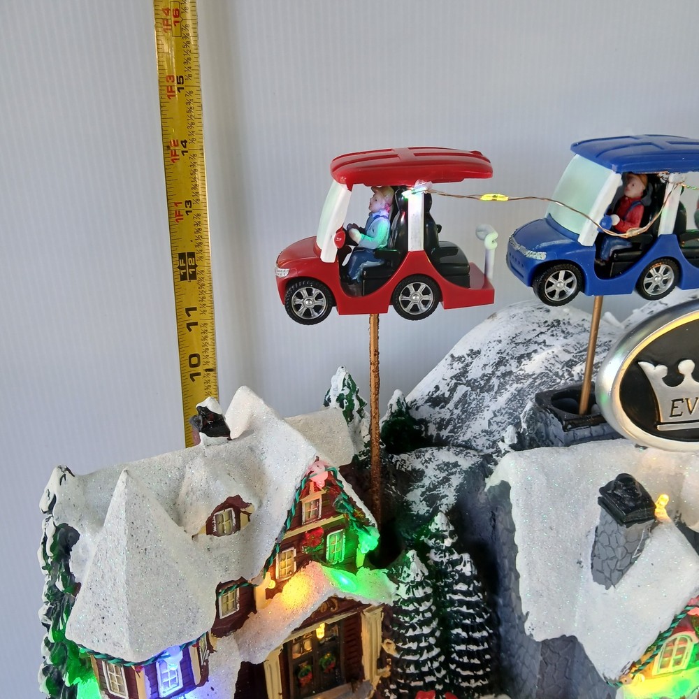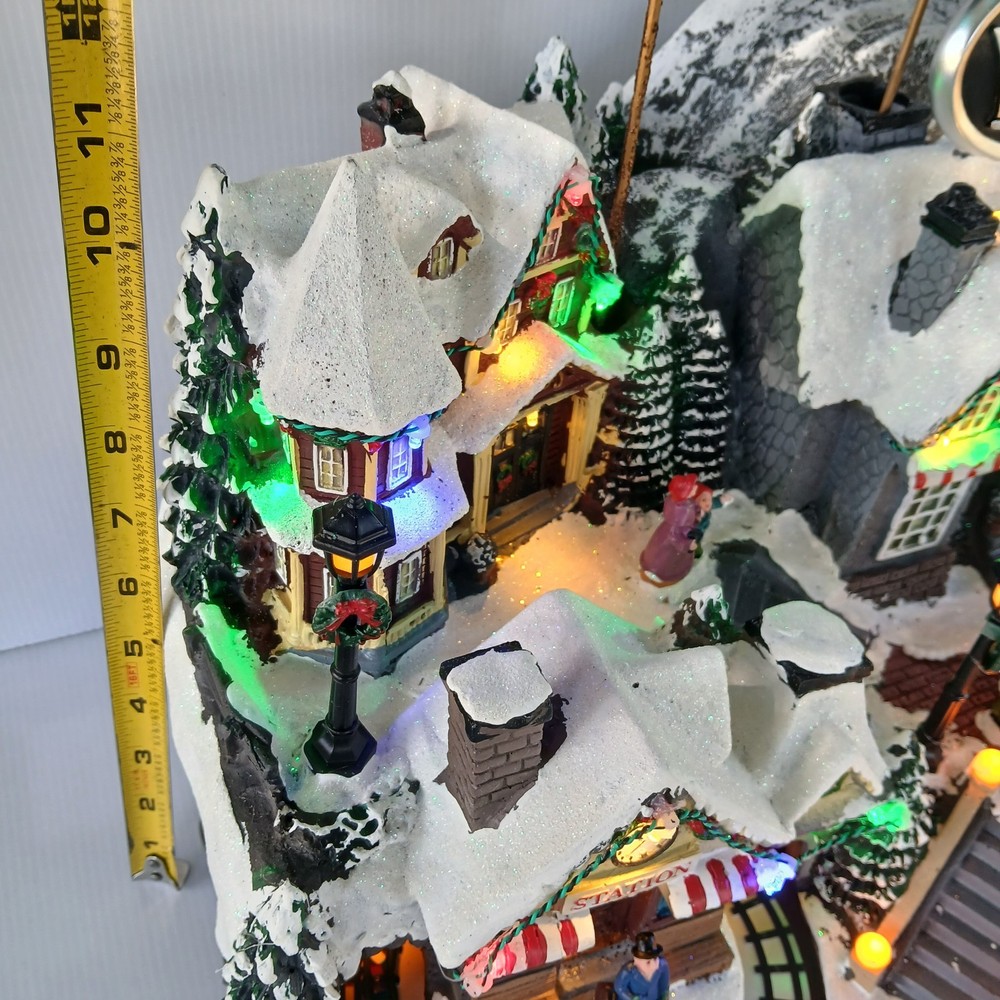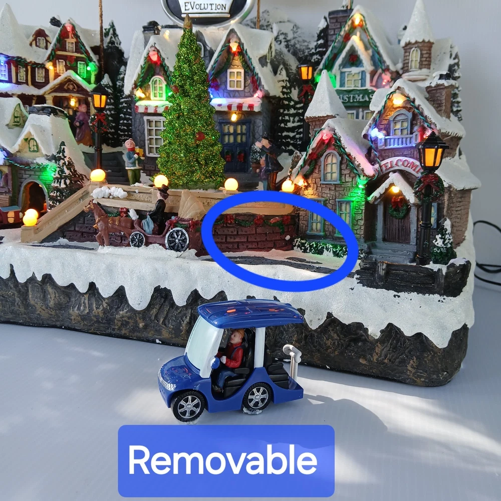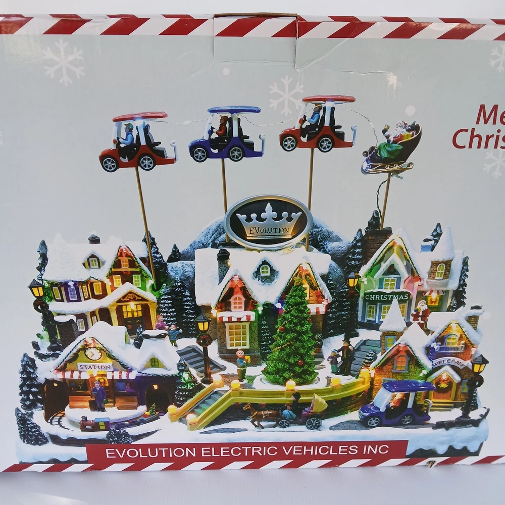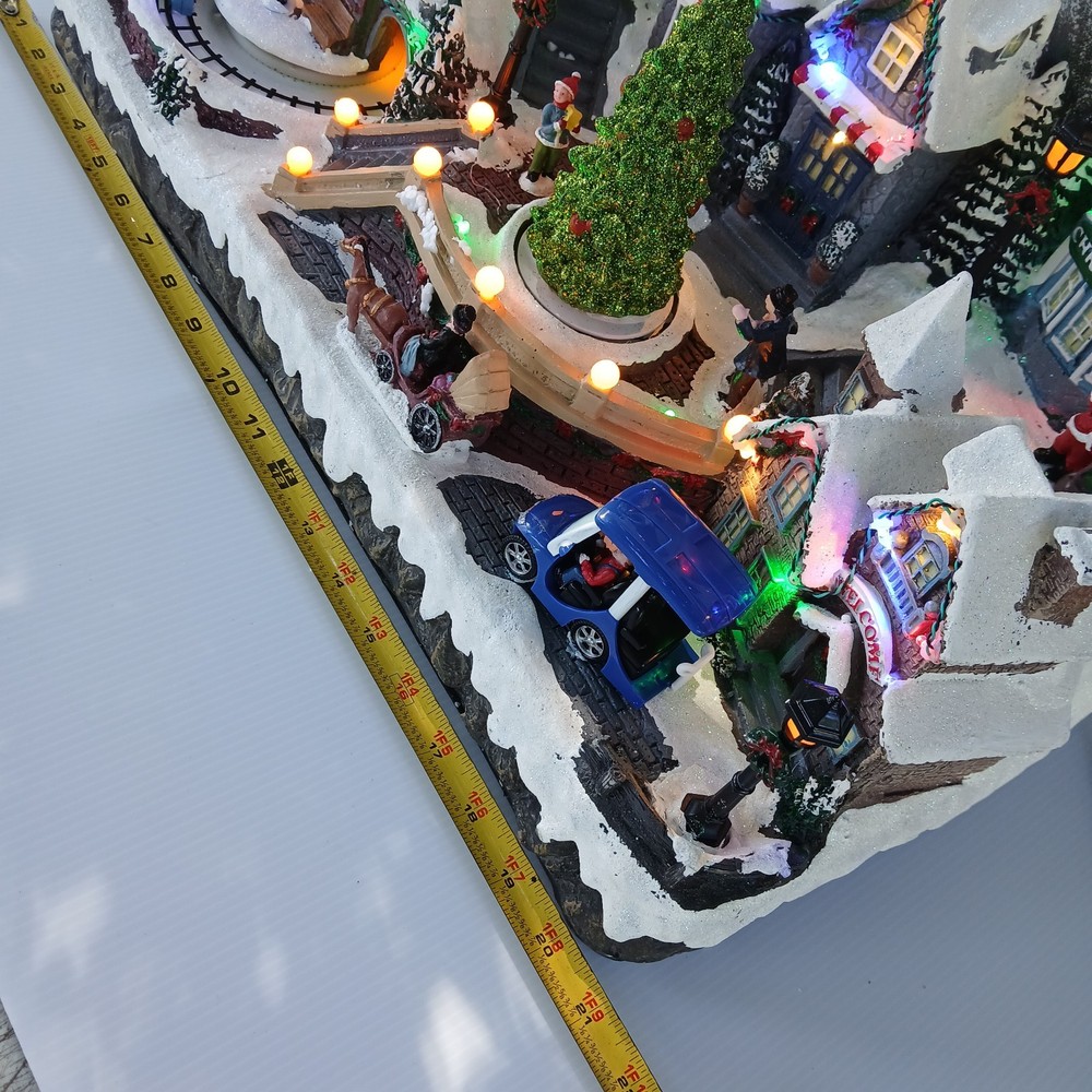 This is not a branded item but it will fit in with most brands today. Lighted with motion and music. Music can be muted in mode 1. Item is pre-loved, includes everything shown and in working order. The lights will flicker slightly while powering on and off only but will work just fine once set. The cart on the bottom is loose from base as shown but can be placed back in with ease if desired. I used to put small figures in the open area. Comes as shown, no returns once shipped. Thanks for looking!