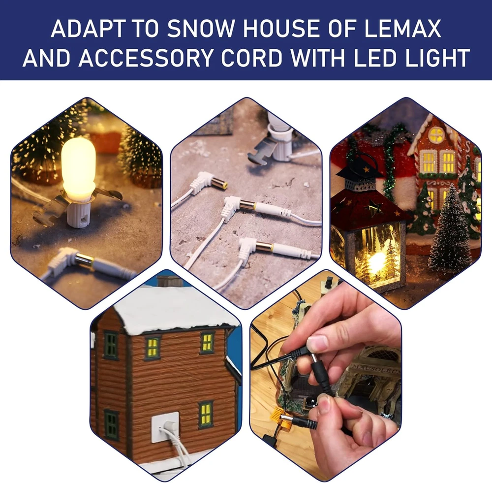 Store New Arrivals Add to Favorite View Feedback Contact AC/DC Adapter Compatible with Lemax Lighted Village Accessory # 74254 94 Description Item model number 1a3b2e7d-d671-4240-b263-adee682a8659 Warranty Description NO Specifications UL Batteries required No Country of Origin China Compatible Devices Lemax Village Accessories and Decorations Connector Type Lightning Item Weight 4.6 ounces Number of Ports 3 Color White Package Dimensions 4.37 x 2.8 x 2.17 inches The Parameters of Power Adapter: interface inner diameter 2.1 mm; Outer diameter 5.5 mm; World wide input voltage 100-240VAC 50/60Hz; Output voltage: 4.5V 1000mA 4.5W; Whole 4.5 volt power supply is UL listed; OVP, OCP, SCP protection (OVP: over voltage output protection; OCP: over Current output Protection; SCP: short circuit output protection Replace Various Models: compatible with Lemax Village Accessories 4.5V # 44241, 44242, 64515, 64516, 64517, 64518, 74254, 74269, 74274, 74275, 74705, 74706, 74707, 94563, 94564, 94565, 94566, 94567, 94568 3 Outlets with Long Cords: the lighted accessory equipped with 3 outlets, whole line length: 9.84 ft, branch line: 4.92 ft, you can light up 3 Christmas decorations with one adapter at the same time, which will be your good assistant to decorate your house Compatible with Lemax Decorations: compatible with Lemax Christmas village such as( # 25859, 24958, 25860, 25861, 25858, 14870, 15805, 04761, 05700, 14821), Halloween spooky town such as (# 5602 05906 15724 15725 14824 Stable Material: the adapter is made of flame retardant PBT material, which can withstands high temperatures up to 320 degrees Celsius, heat resistant and long lasting, both plug and cord are UL certified, keep you and your family safe Features: Alternating current/direct current Adapter Compatible with Lemax Christmas village Halloween spooky town Accessories One socket lights up 3 items UL listed, safe to use Product Parameters Interface Inner Diameter: 2.1 mm Outer Diameter: 5.5 mm Input Voltage: 100-240VAC 50/60Hz Output Voltage: 4.5v 1000mA 4.5W Specifications: Color: white Package includes: 1 x Power adapter pack Notes: Winding risk may exist, please keep our product away from children. ABOUT US We offer the best prices around on high quality products. Our E-store includes media such as books, movies, music and games while offering electronics, toys, sporting apparel, clothing, tools, general home, garden items and more. SHIPPING We are always working hard to ensure your package arrives as soon as possible. Please understand that some factors like weather, high postal traffic, and the performance of shipping companies are outside of our control. RETURNS We offer a 30-Day Return Policy on items which you are not completely satisfied with. You have the option for a full-refund or an exchange of the item. PAYMENT We accept PayPal. CONTACT US This page content is yet to come Please ad us to your favorite seller and visit again later Thank You CUSTOMER SATISFACTION We try our very best to make sure every customer is completely satisfied. If there's a problem, message us! We're happy to help.