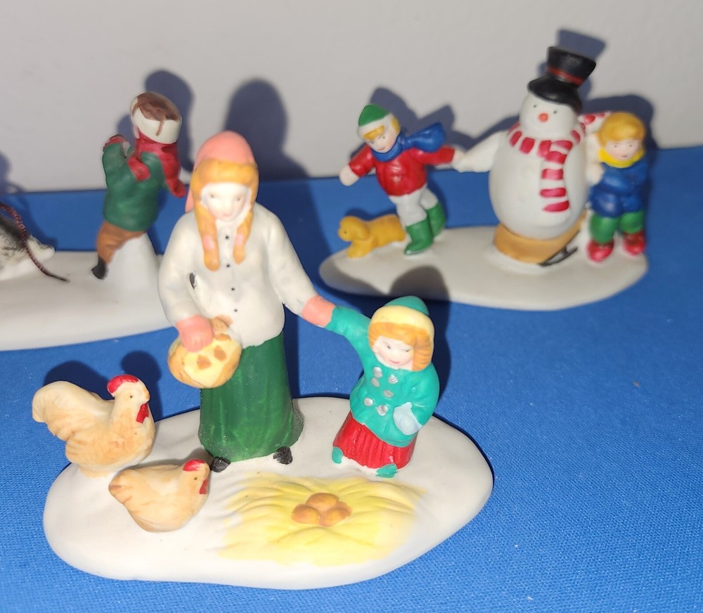 4 Lemax Accessories Chopping Wood, Our Snowman, Gathering Eggs, Forgotten Summer All are in Good to Very Good Condition. Expect minor Flaws Years Made 1993, 1996, 1997