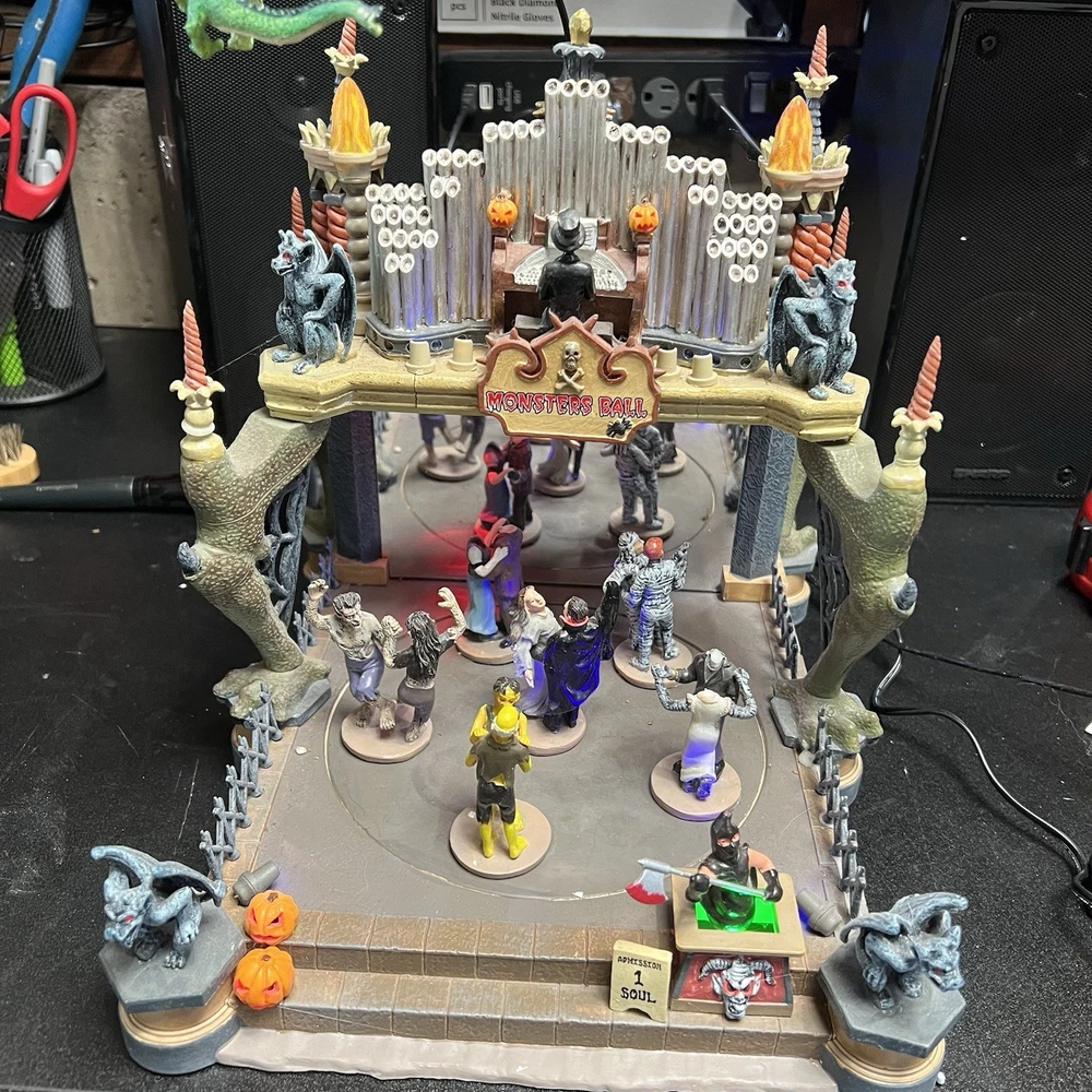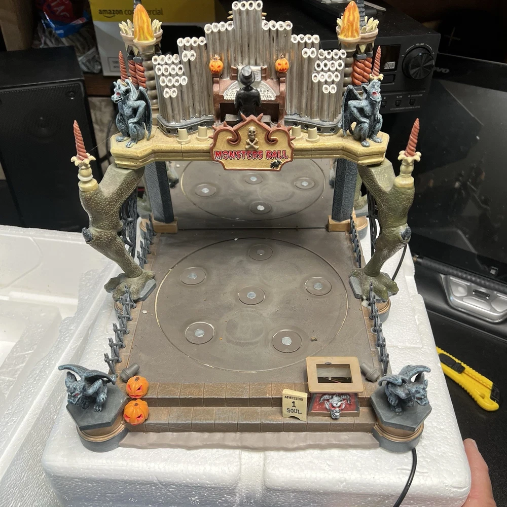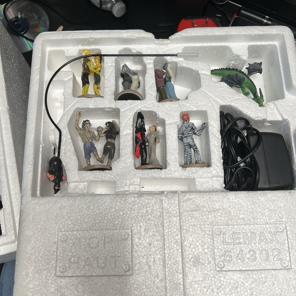 Lemax Creepy Barn Spooky Town Halloween Village Lighted 2005 RETIRED WORKS **** Mr & Mrs Frankenstein heads are missing Everything else is complete