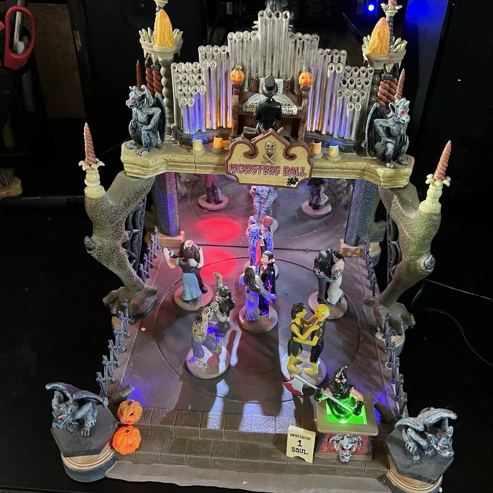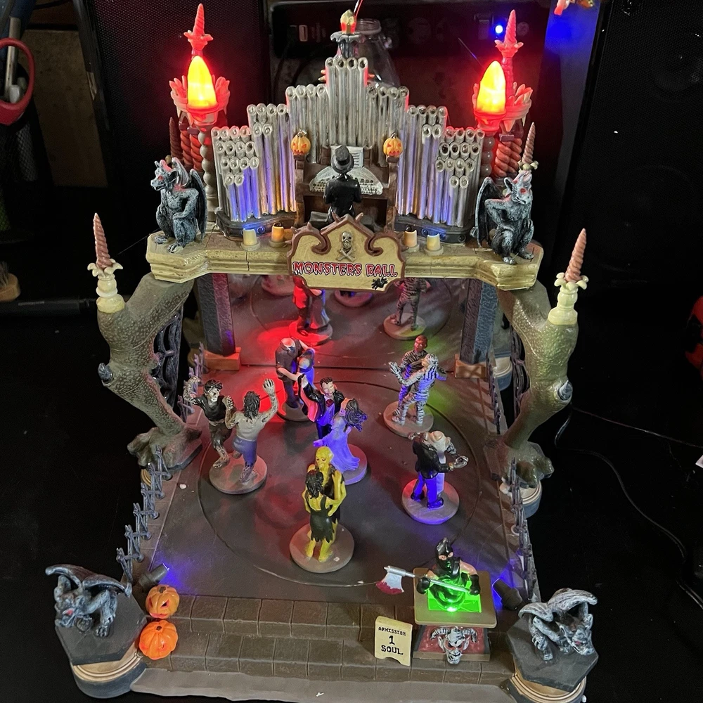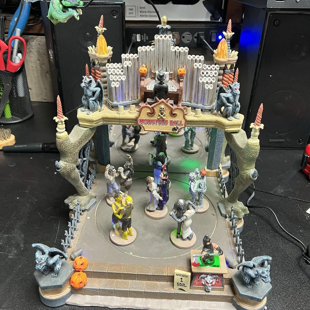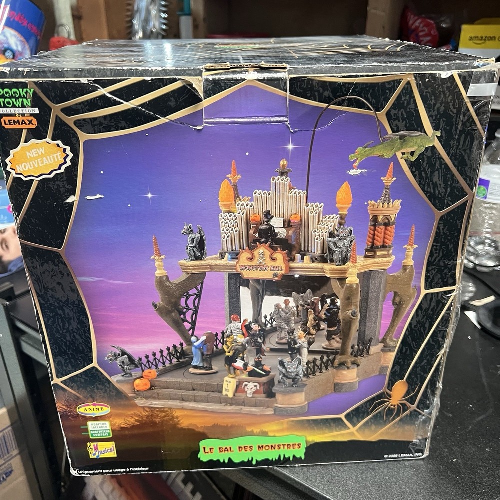 Lemax Creepy Barn Spooky Town Halloween Village Lighted 2005 RETIRED WORKS **** Mr & Mrs Frankenstein heads are missing Everything else is complete