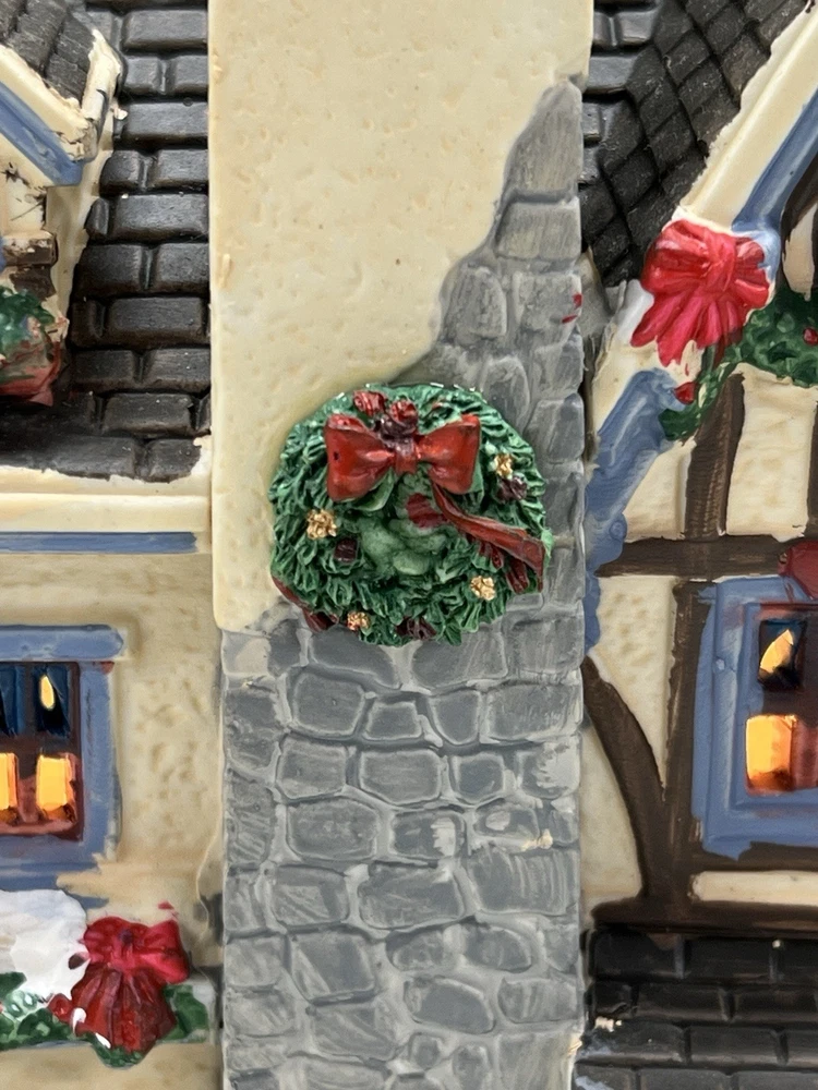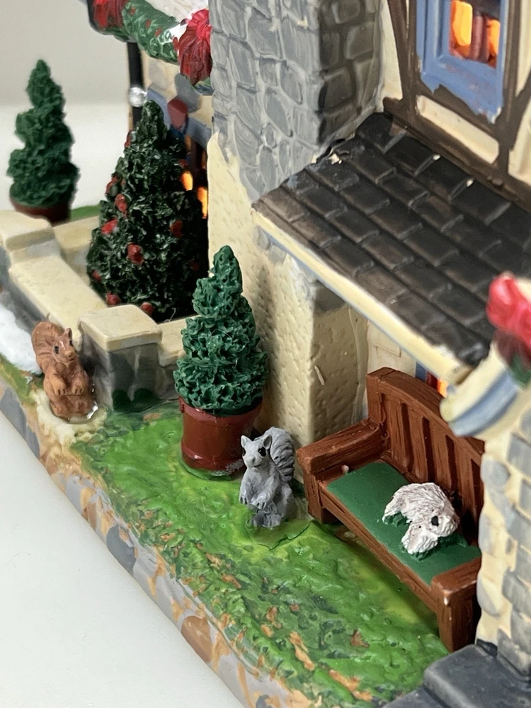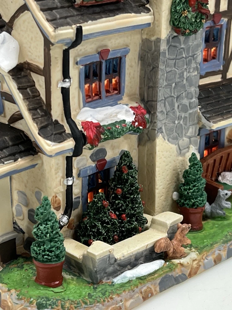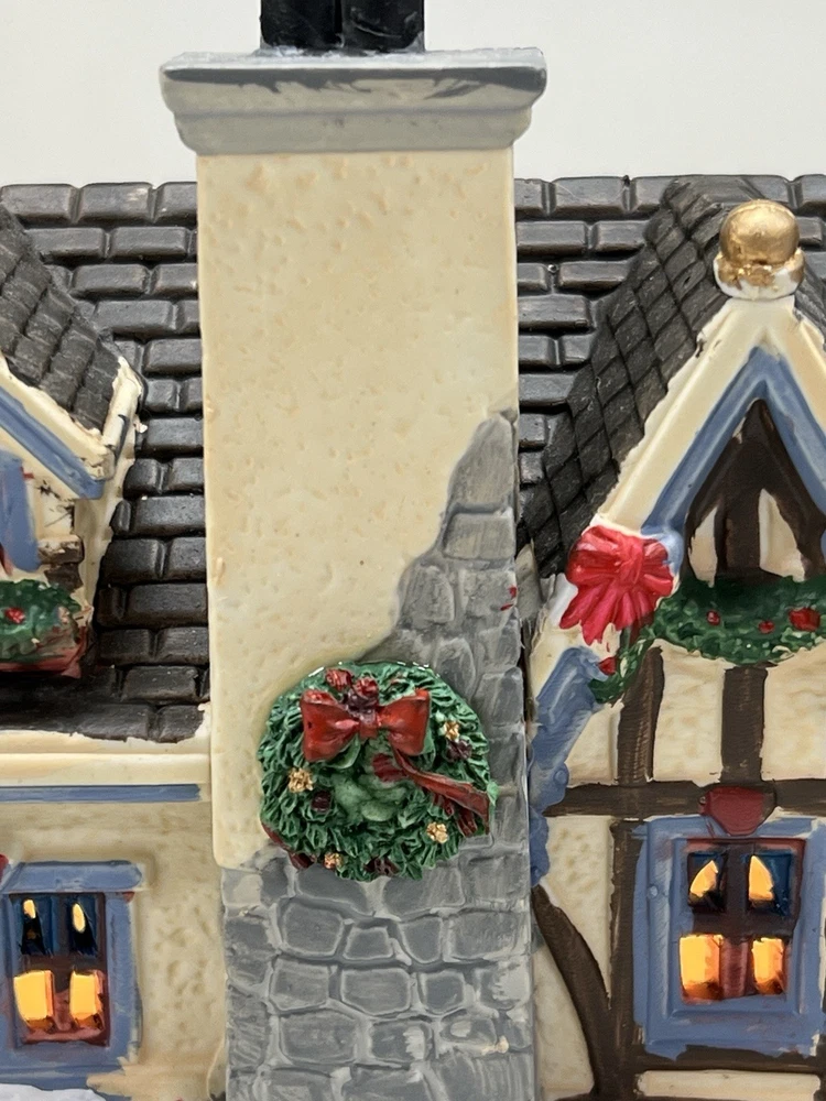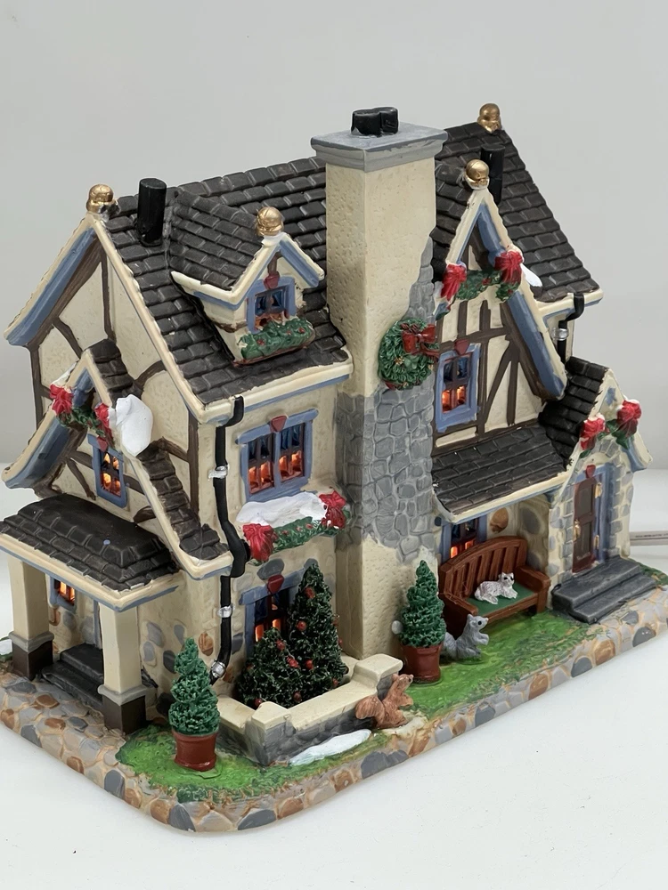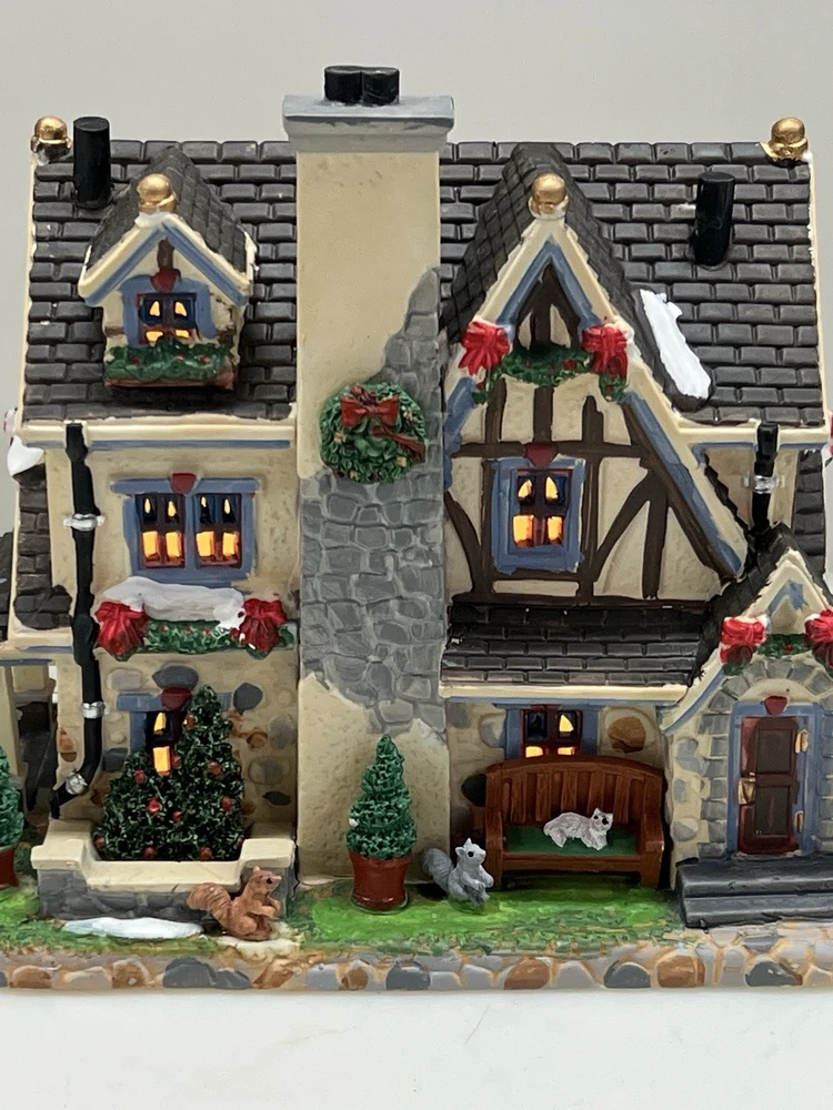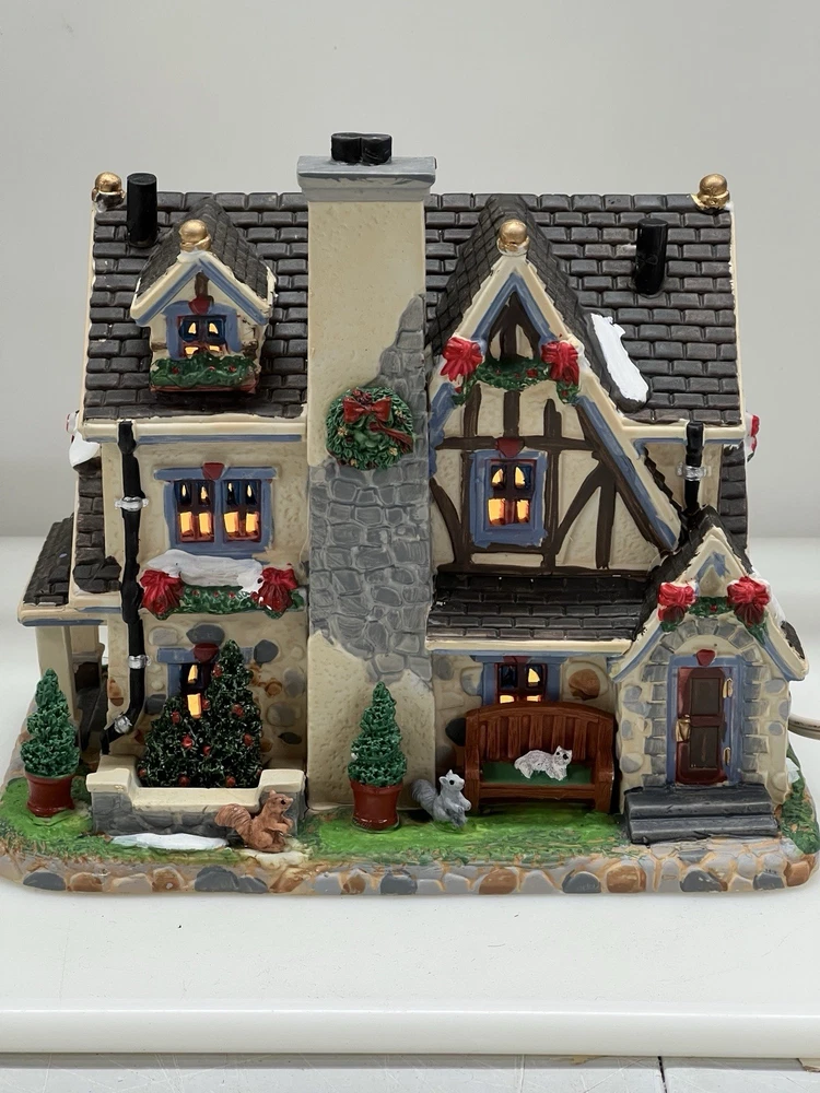 The Lemax Lighted Christmas Village "Morrison Manor" #75221 is a beautifully painted ceramic house in an asymmetrical shape, depicting a whimsical country home perfect for Christmas village displays. This American-style residence features a multicolor design and stands at 8 inches in length, 7 inches in height, and 5 inches in width. Manufactured in 2017, this retired piece from Lemax is suitable for any room and adds a festive touch to your holiday decor with its lighted house design. The Lemax Morrison Manor is a charming addition to any Christmas Village collection, offering a unique and detailed representation of a seasonal, period-inspired home. Absolutely incredible detail & color ! Perfect pristine condition! Comes with all original packaging including cord & light .