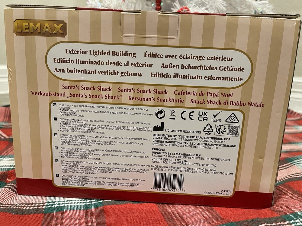 Brand New In Box. Originally $89.99. This is a part of the Lemax Santa's Wonderland Village collection, specifically Santa's Snack Shack. Perfect for collectors or those looking to create a whimsical winter display, this Christmas village item embodies the spirit of the holidays with its seasonal theme and detailed construction.