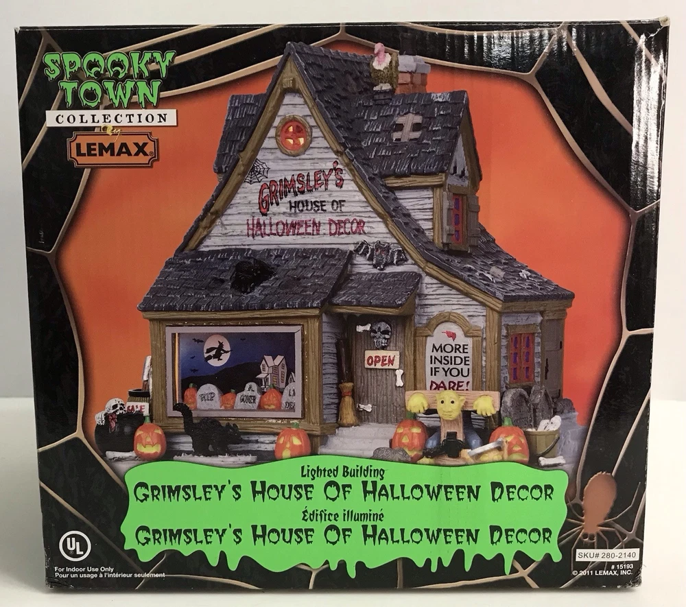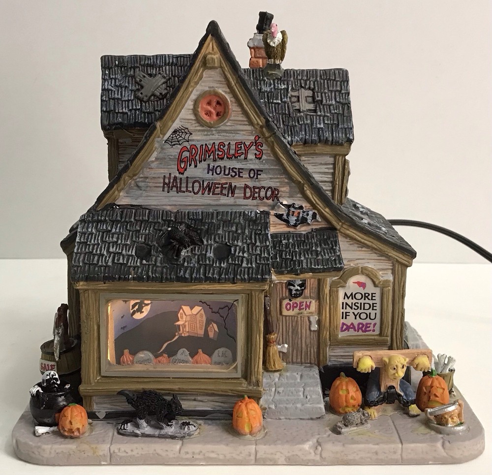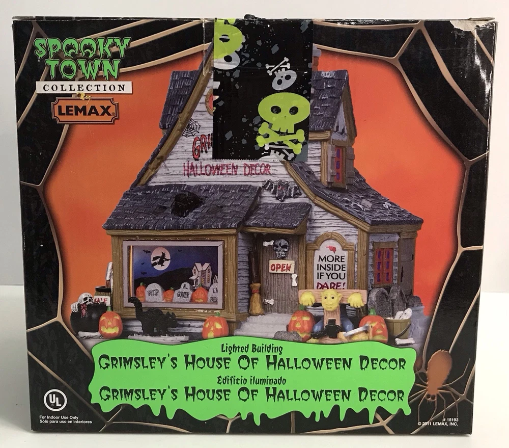 Lemax Spooky Town 2011 Retired GRIMSLEY'S HOUSE OF HALLOWEEN DECOR #15193 *READ* Nice overall condition. The cat and the monster have been re-glued to the base. Please see photos for condition details.