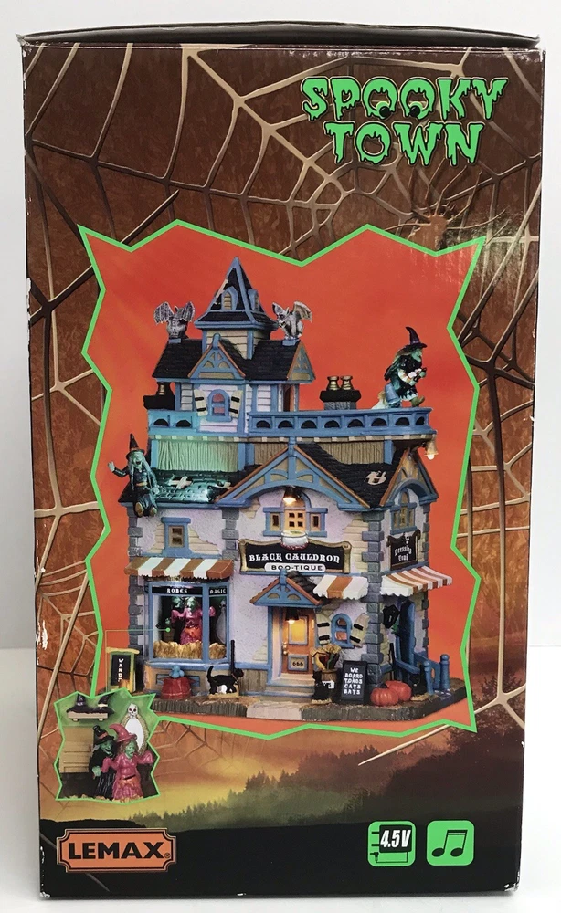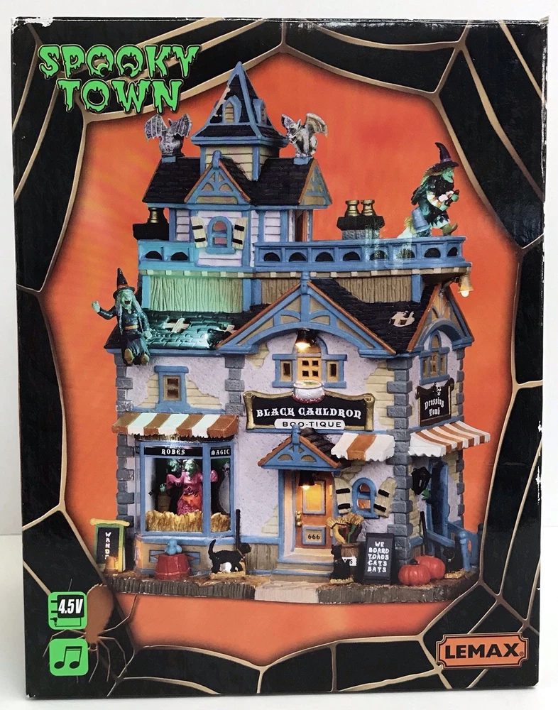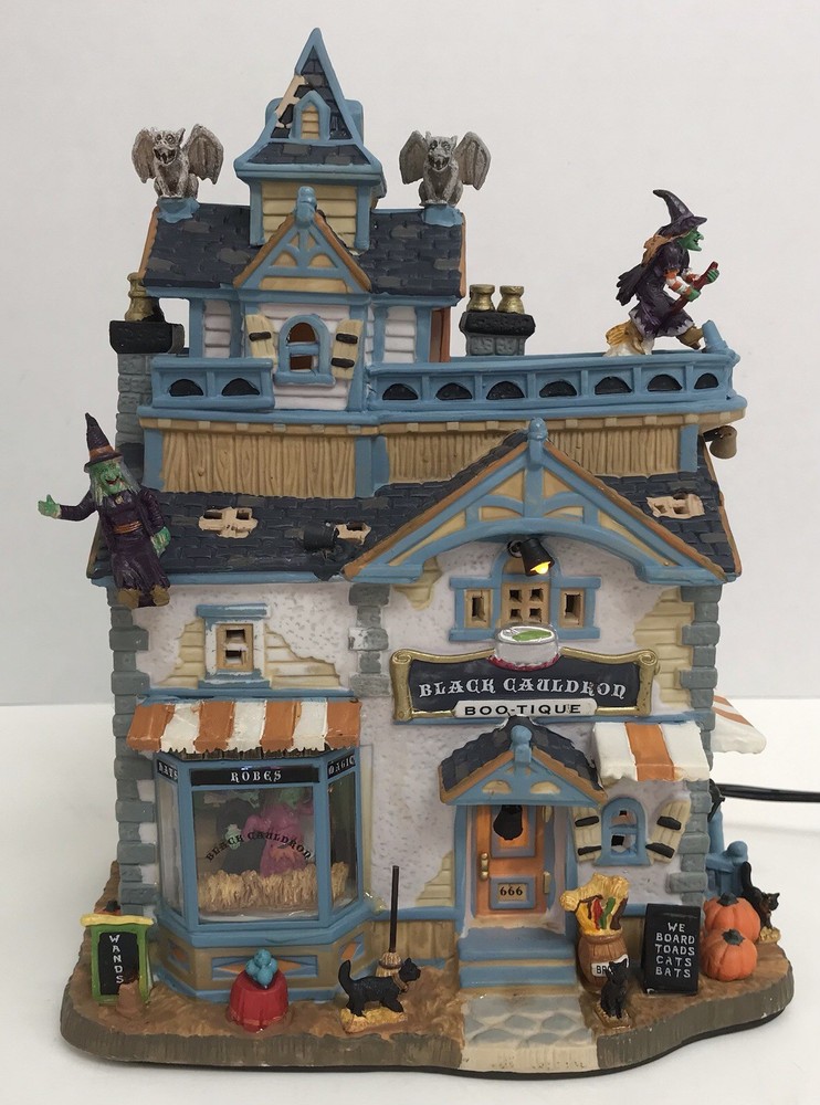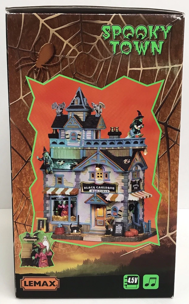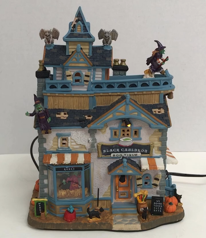 Lemax BLACK CAULDRON BOOTIQUE Spooky Town Building Halloween 05005 VIDEO Nice condition. No chips or cracks. Please see pictures and video for condition details.
