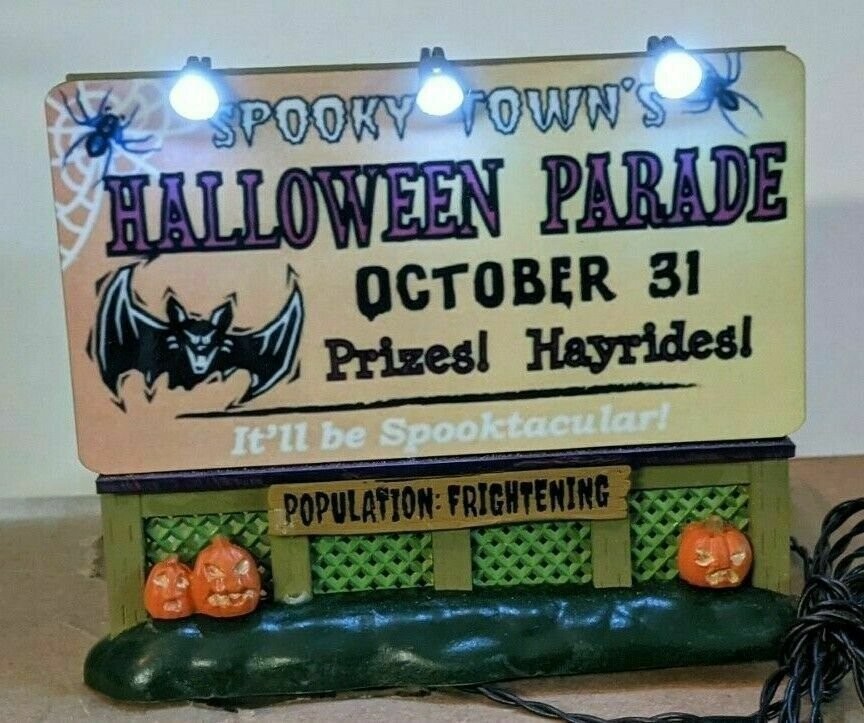 Please ask any questions before making the purchase. New. Custom Lemax Spooky Town Lighted Billboard Halloween Parade Approx. size (H x W x D) 4 4 .29 x 4.72 x 1.02 inches 1 10.9 x 12 x 2.6 cm S/H FOR THIS ITEM WILL BE $10.00 IN THE STATES AND WILL INCLUDE DELIVERY CONFIRMATION. ALL SHIPPING IN THE STATES WILL BE DONE USPS, FIRST CLASS OR PRIORITY!
