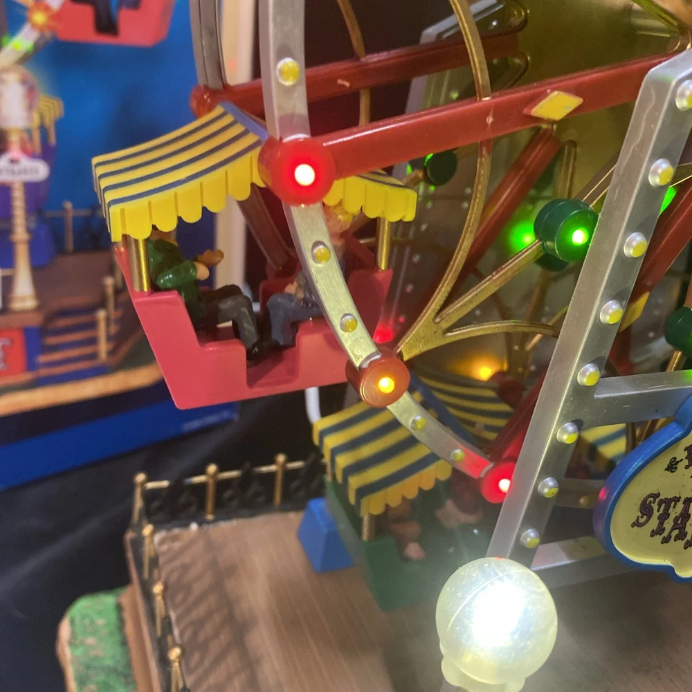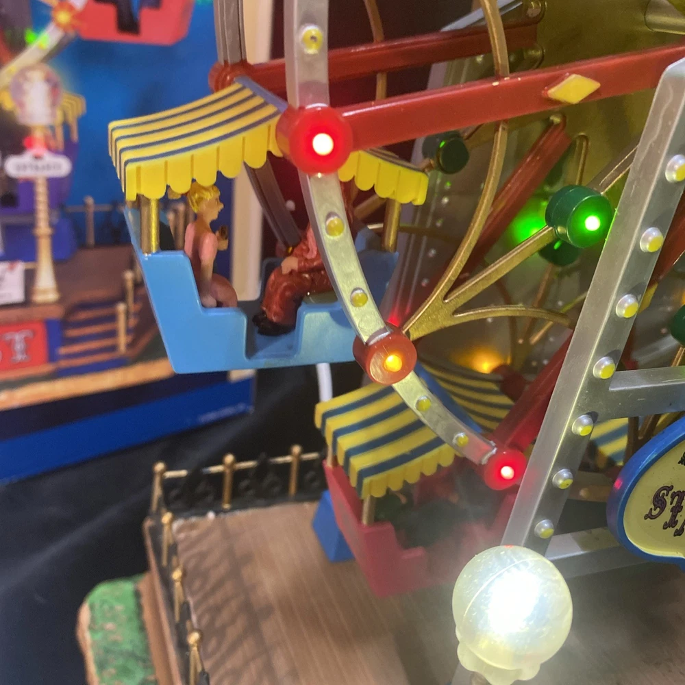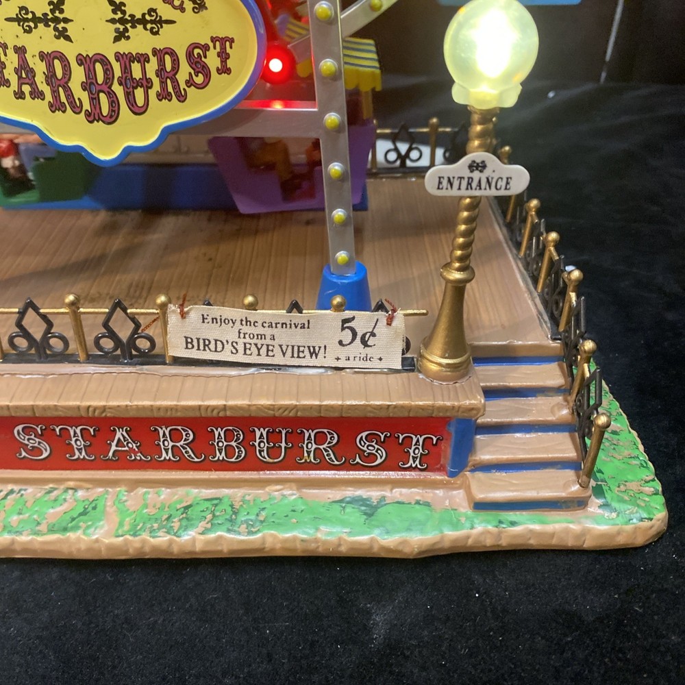 The Lemax Village The Starburst 64489 Ferris Wheel is a beautifully crafted collectible designed for holiday enthusiasts. This intricately detailed Ferris wheel is part of the Lemax Village collection and is themed around Carnivals . Made in China, this Ferris wheel lights up and plays sound effects, adding an extra touch of magic to any holiday display. Perfect for collectors or those looking to add a festive touch to their home whatever the season, this Lemax Village Ferris Wheel is sure to delight both children and adults alike.