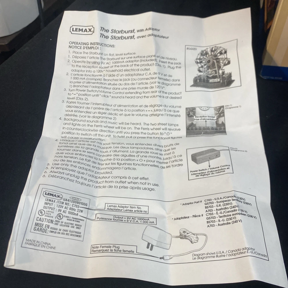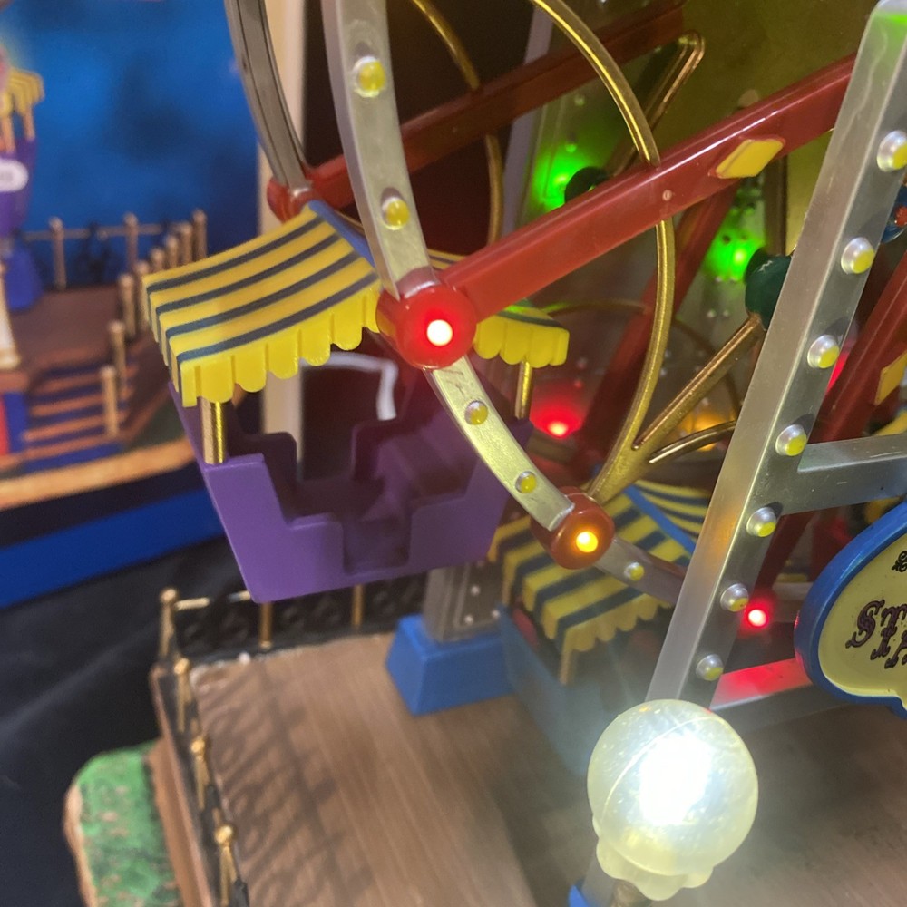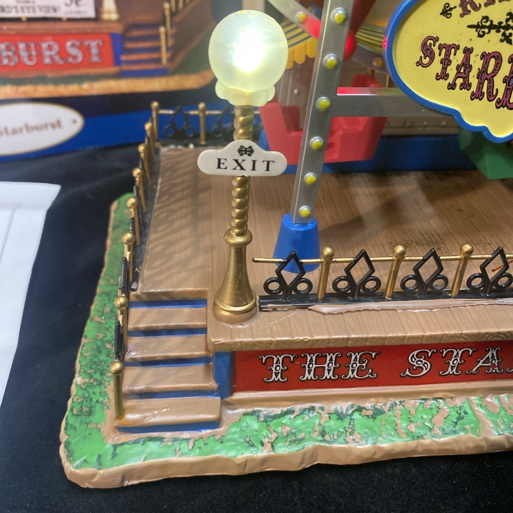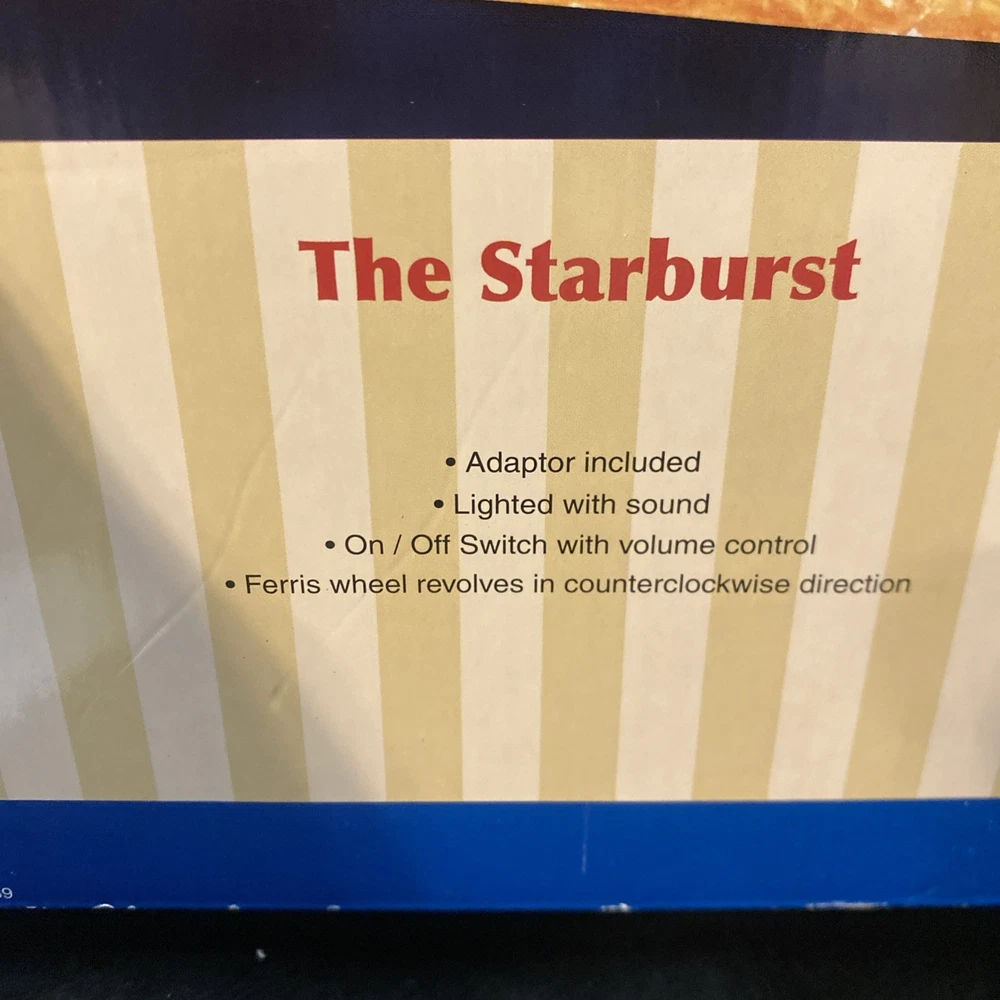 The Lemax Village The Starburst 64489 Ferris Wheel is a beautifully crafted collectible designed for holiday enthusiasts. This intricately detailed Ferris wheel is part of the Lemax Village collection and is themed around Carnivals . Made in China, this Ferris wheel lights up and plays sound effects, adding an extra touch of magic to any holiday display. Perfect for collectors or those looking to add a festive touch to their home whatever the season, this Lemax Village Ferris Wheel is sure to delight both children and adults alike.