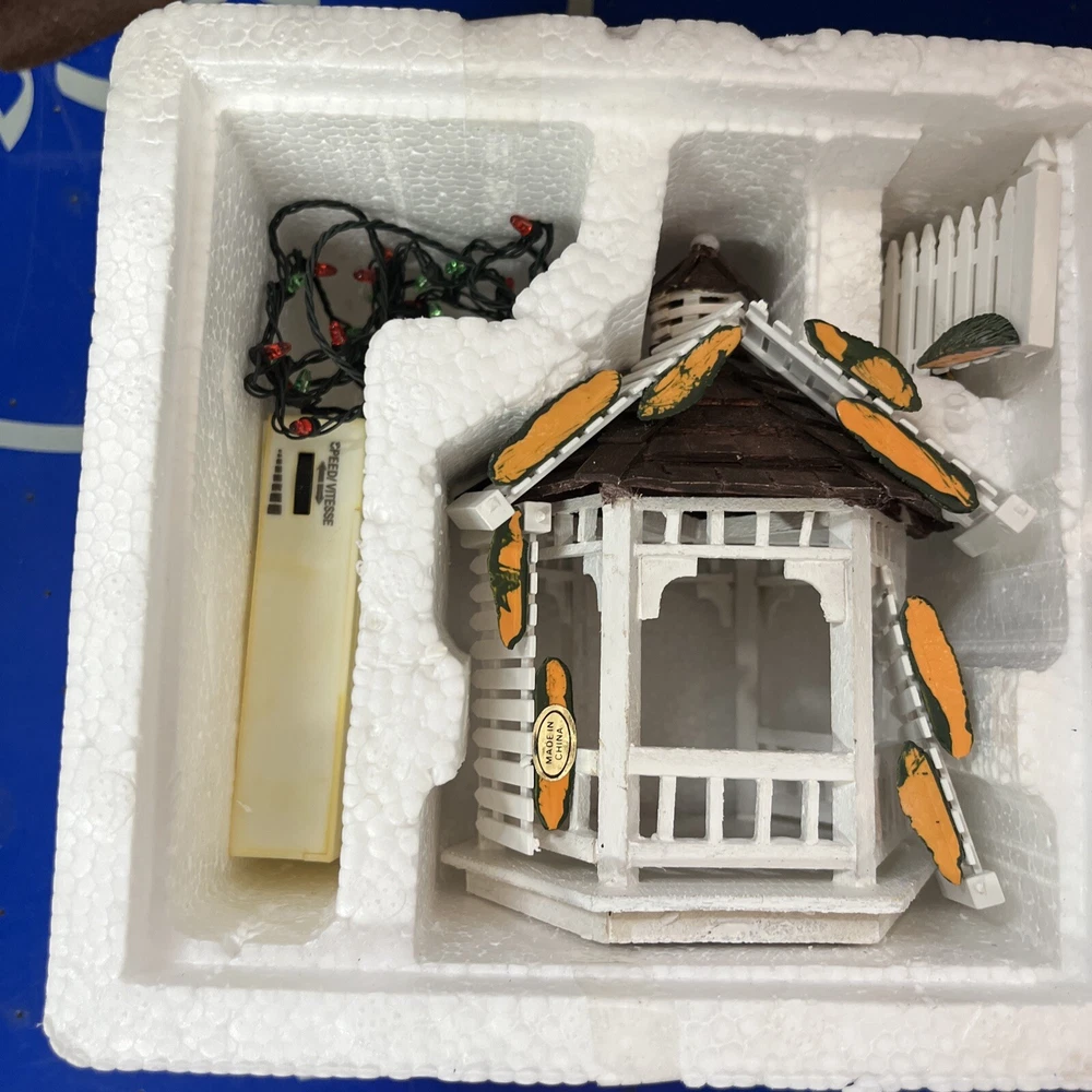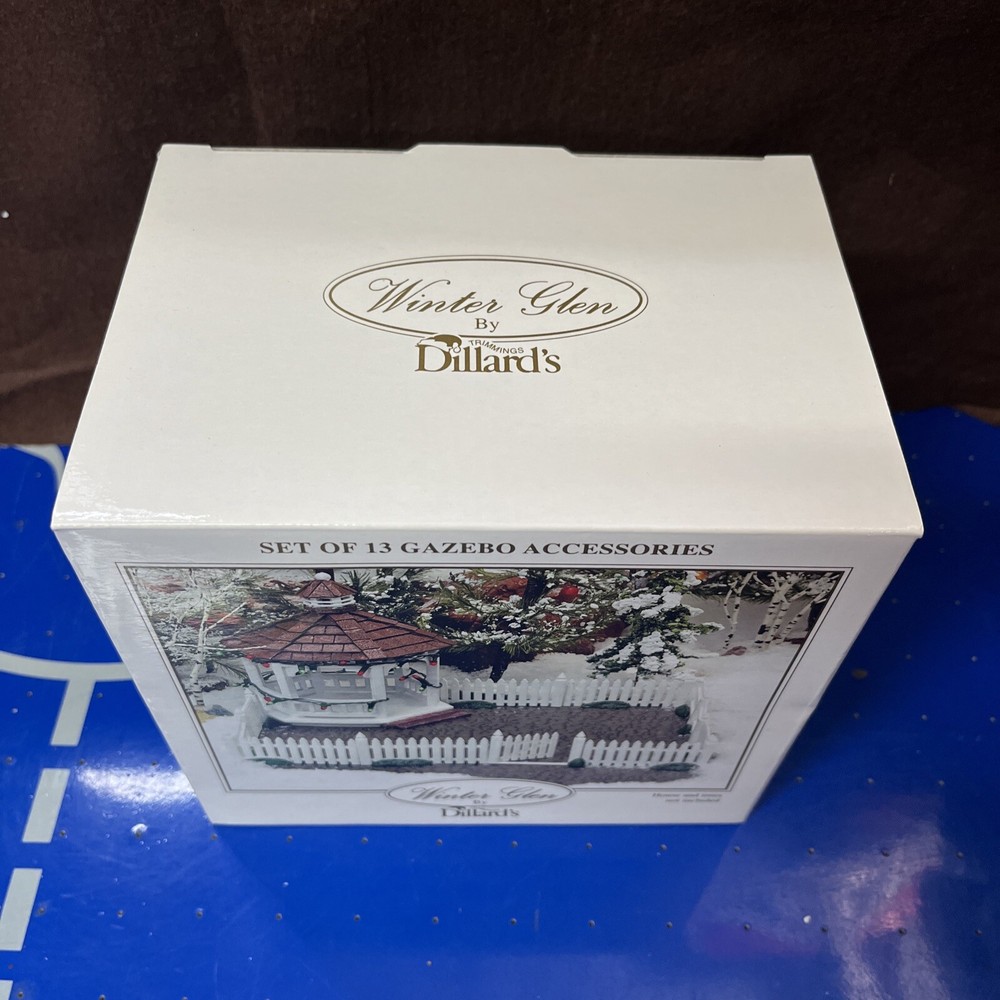 The Lemax Winter Glen by Dillard's Christmas "Set of 13 Gazebo Accessories" is a collection of ceramic and porcelain gazebo accessories designed for a Christmas village display. This set includes 13 pieces that are perfect for adding a festive touch to your holiday decor, with a winter theme and a focus on lighted Christmas trees. Made by the renowned brand Lemax, these accessories are sure to enhance the charm and whimsy of your seasonal display.