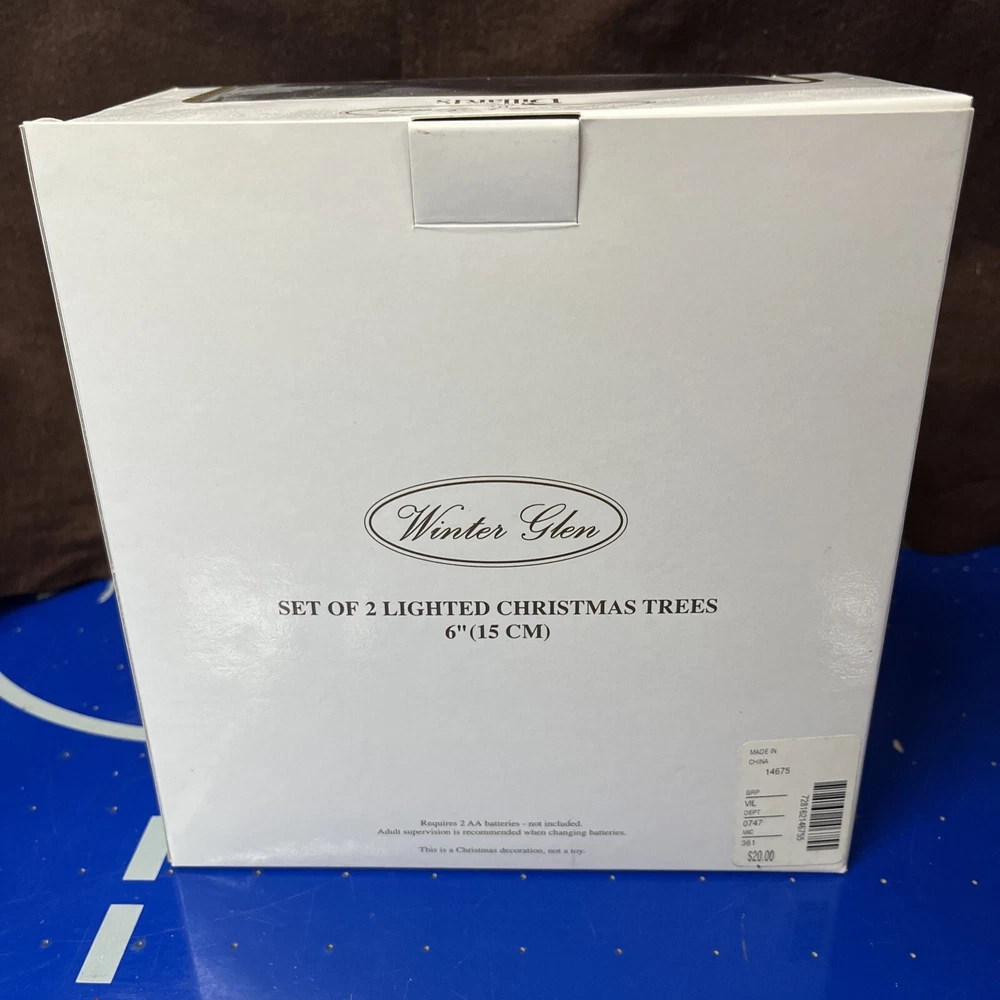 The Lemax Winter Glen by Dillard's Christmas "Set of 2 Lighted Christmas Trees" is a ceramic and porcelain collectible from the Winter Glen collection. These beautifully crafted Christmas trees are perfect for adding a touch of holiday cheer to your village display. With a festive hot cider subject, they are sure to bring warmth and charm to your winter scene. The lighted trees are a delightful addition to any Christmas decor, bringing a sense of magic and nostalgia to your home during the holiday season.
