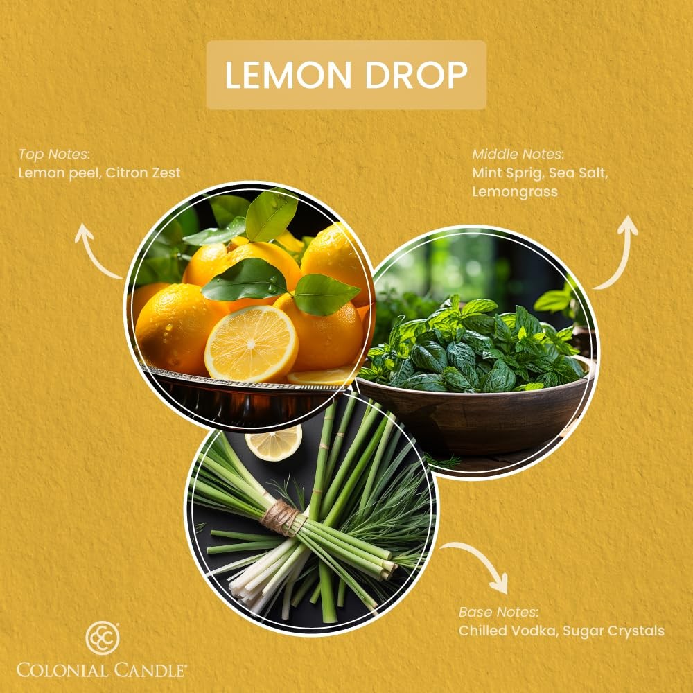ZESTY | Freshly squeezed lemons paired with mint sprig and chilled vodka makes for the perfect summer cocktail & scent! Like your favorite summertime drink, Lemon Drop is like the first time fresh limoncello hits your senses. Cheers! FRAGRANCE | T: Lemon peel, Citron Zest M: Mint Sprig, Sea Salt, Lemongrass B: Chilled Vodka, Sugar Crystals BURN | Featuring three premium cotton wicks, this soy blend candle boasts a premium fragrance load for a powerful experience. CAREFULLY CRAFTED | This 14.5 ounce candle is proudly poured in the USA. Our history of USA manufacturing guarantees a premium quality product. Special Feature - Scented Jar Candle, Fragrance Candle, Premium Wax, Smokeless, Dripless, Clean Burn