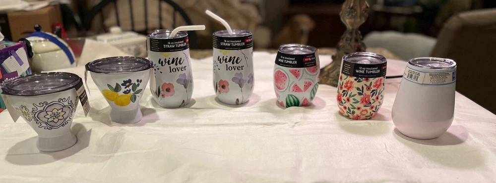 Wine Lover!! Variety of wine and cocktai tumblers. all purpose use hot or cold. Choose what you’d like and I’ll get them sent out right away!