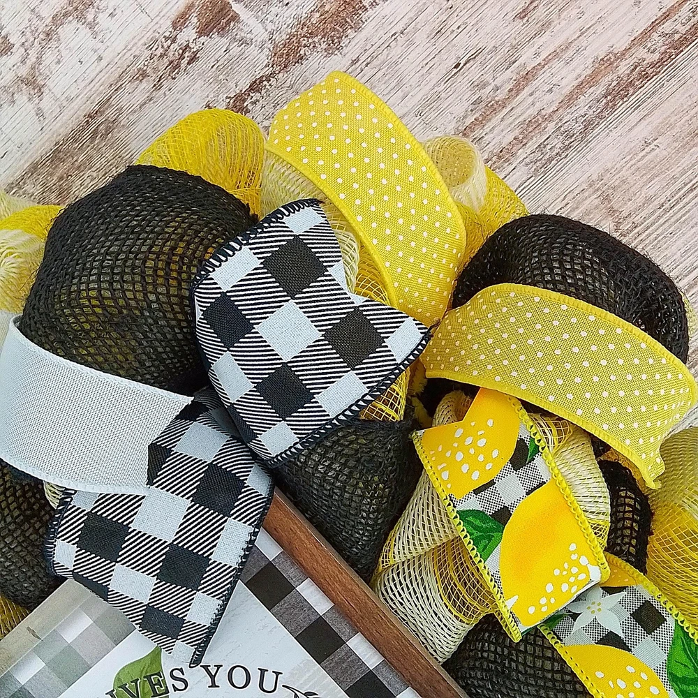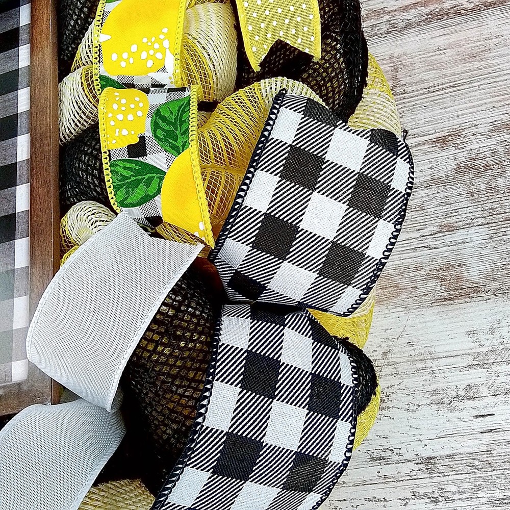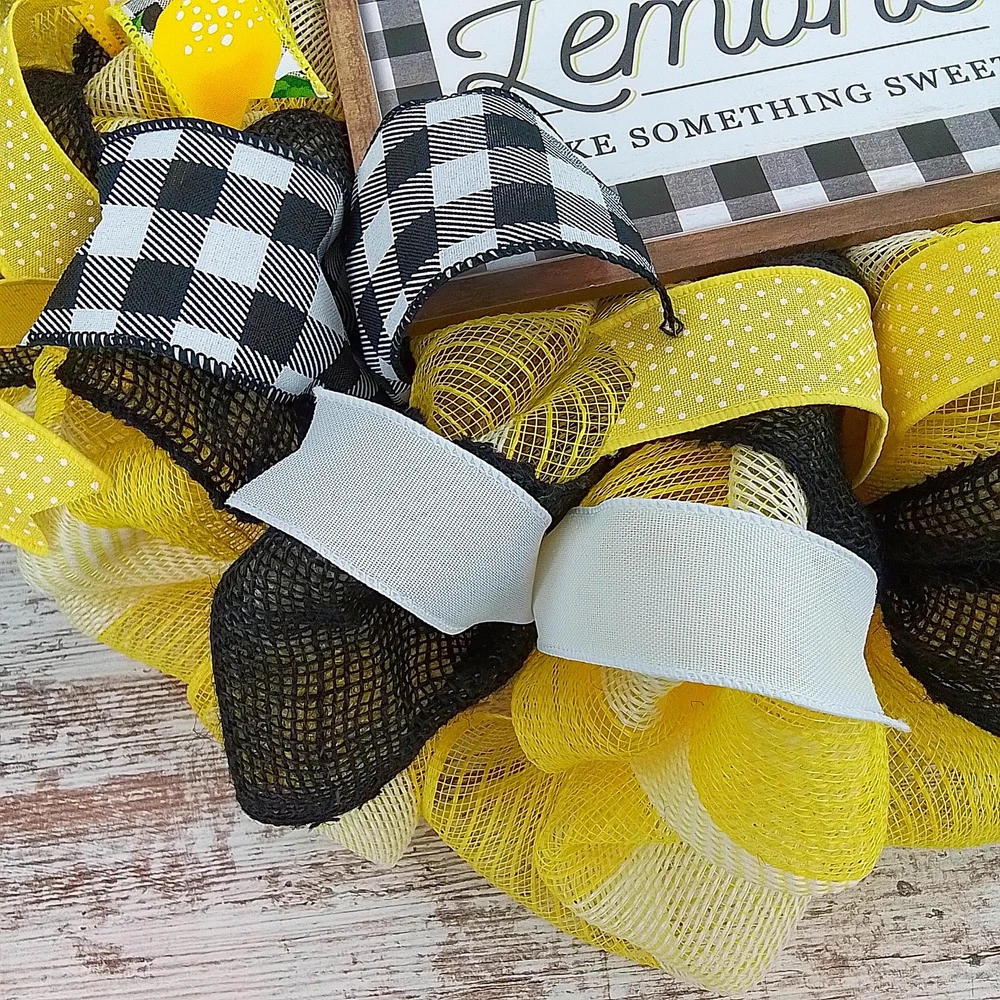 This lemon wreath will make a wonderful addition to your summer decor or a thoughtful gift for that special birthday. Use it for your own beach wreath, a summer wreath, a pool wreath or lake house decor! Thank you so much for visiting my shop and for considering pieces that allow my passion to make your home even more beautiful. Please message me with any questions before purchasing. This wreath measures approximately 24 inches round and approximately 5" deep. This ready to ship wreath is made with yellow and jute mesh and accented with several coordinating ribbons to showcase the wooden lemon sign in the center (that is removable). Want something more custom or have questions? Send me a message...the backbone of my business is custom creations! Purchase with confidence in a seller with excellent reviews and over 15,000 sales between all selling venues. Indoor and outdoor pieces but my wreaths do appreciate a little shelter from the elements to stay in pristine condition.