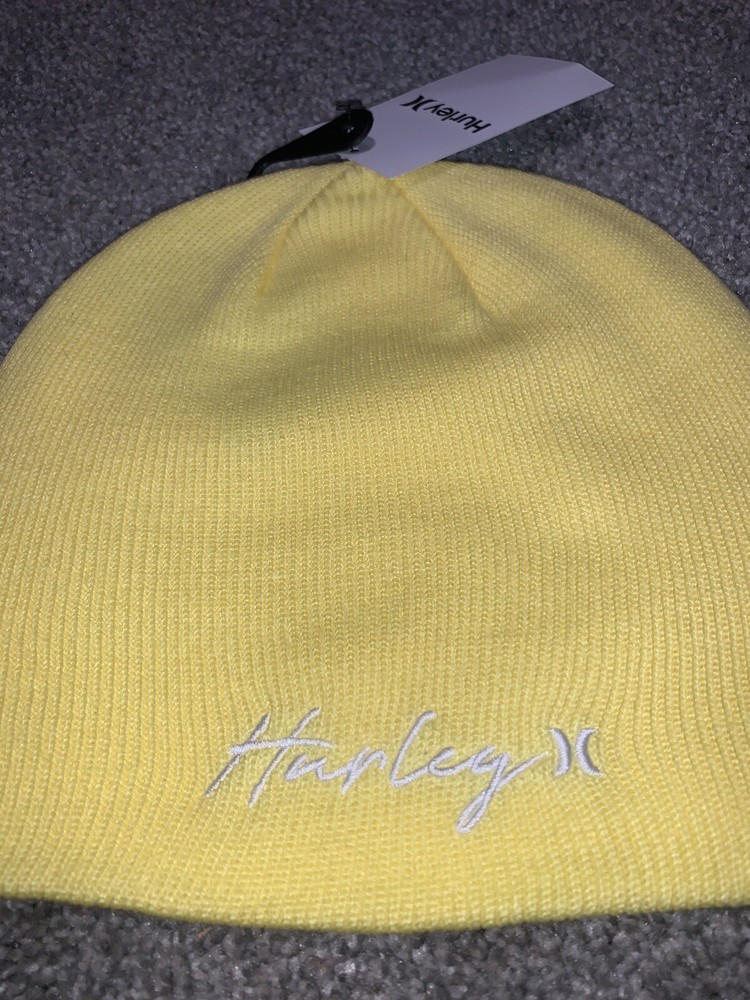 Lemon Yellow Hurley Signature Script Cuff Beanie Girls Winter Hat Toboggan. Also Can Be Unisex