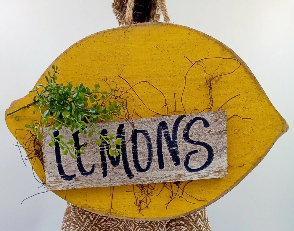 "Lemons " Handmade Hanging Wood Sign Yellow with Greenery & Jute Hanger 14.5x10". The color of the sign is yellow. It is distressed for a rustic look. Made in the USA. Jute Rope attached for hanging. Measurements are 14.5" long by 10" wide. Condition is Handmade New/Unused. Please check out our photos for further information. If you have any questions or concerns, please contact us. Please check out The Burly Owl Lady eBay store for more great products! Shipped USPS. We ship vintage and new items. We carefully pack with care to ensure the safety of each item. We do not pass these packaging costs onto the buyer. Furthermore, we do not charge any extra fees for handling. We only charge for the USPS shipping charge. We do monitor shipping prices frequently. In most cases, we do find the USPS to be the most inexpensive way to ship our products. We try to be as detailed as we possibly can in our photos and descriptions. We try to mention any imperfections in our vintage items. We may miss things from time to time or our photos may not be enough clarification for you to see the item. We will be glad to answer any questions or send you more photos. If at any time, you have a question or issue, please contact us immediately. We will contact you within 24 hours. We want to make sure you have a good experience in purchasing any of the products. If you are happy with your purchase, please leave feedback. It will help us to grow and offer more great items in our store! Thank you for your interest in one of the many products in our eBay store! Renee Burly Owl Lady