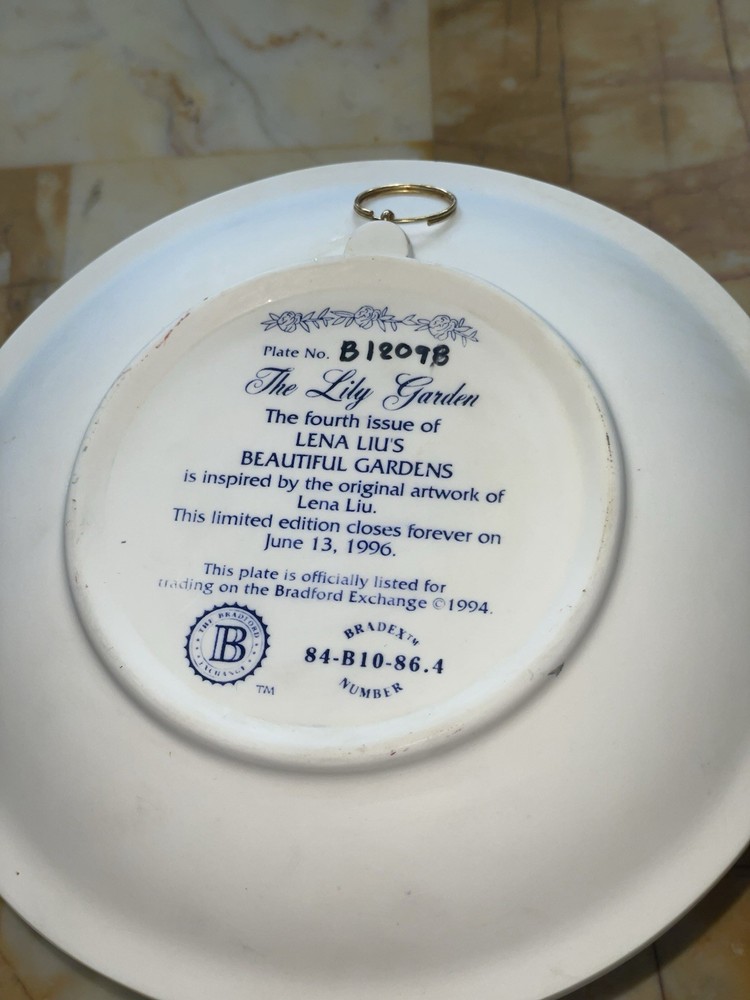 The Lily Garden Plate by Lena Liu is a beautifully crafted ceramic collector plate featuring a stunning design of 3D flowers and butterflies. This vintage piece from the Bradford Exchange is a decorative item perfect for any occasion, with a multicolor paint job that adds a touch of elegance. Measuring 7 inches in diameter, this late 20th-century sculpture reflects American culture and artistry from the 1990s era. Ideal for collectors of decorative pieces, this plate showcases the intricate craftsmanship and unique style that Lena Liu is known for.