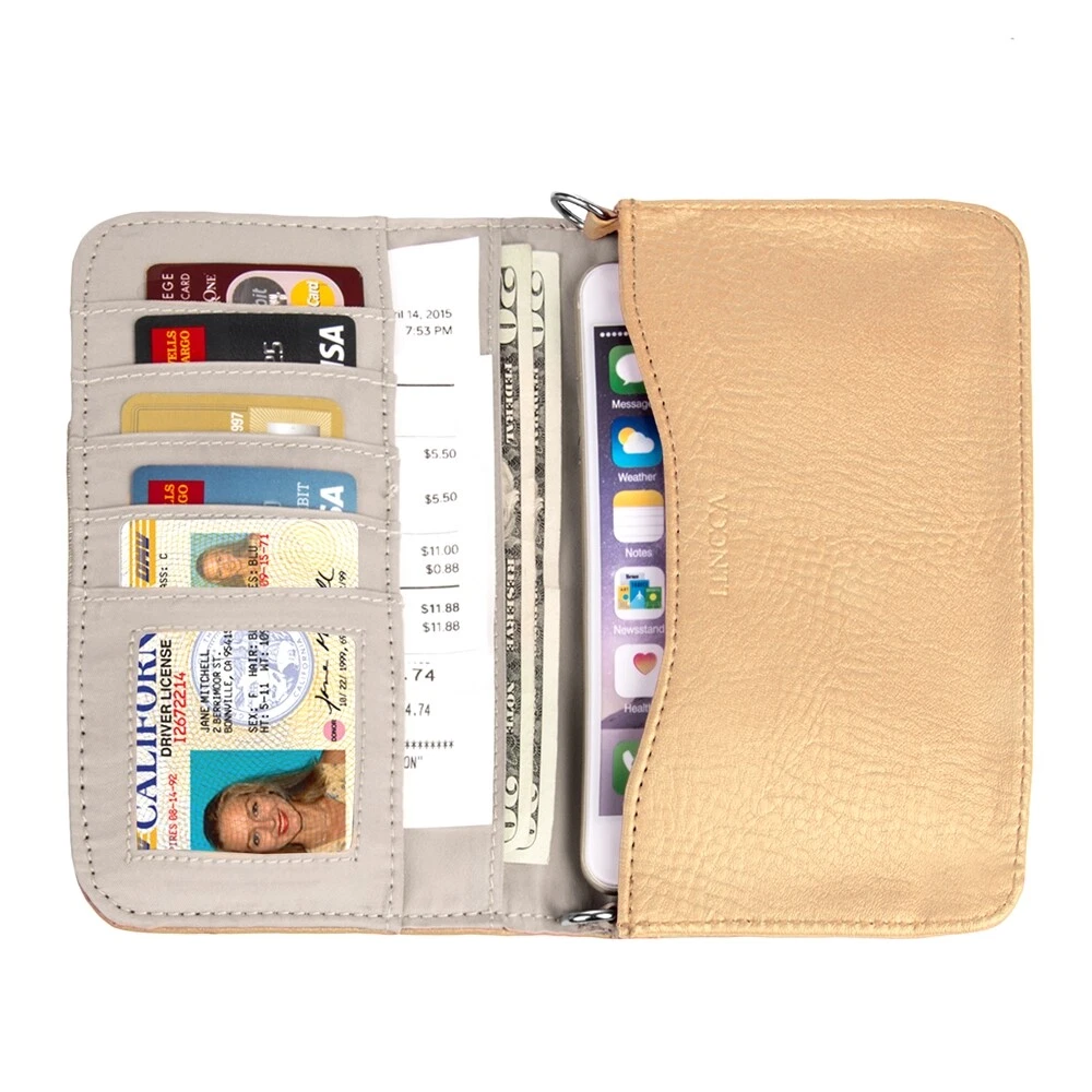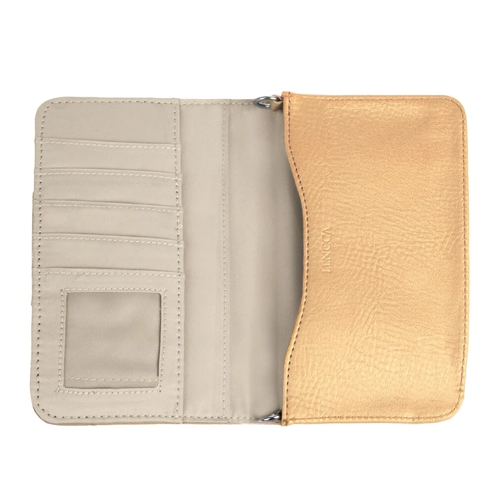 Lencca Kyma Series Women Cell Phone Wallet Case Shoulder Crossbody Purse Bag Made of high quality faux leather material,durable and long lasting Features 4 slots for business/credit cards,1 ID window slot,2 bill slots for money, checks, receipts, etc,1 cell phone compartment and 1 back zipper pocket for coins,keys,etc Flap closure Matching leather strap along with dual chains strap for additional height adjustment and choice of style Fits for iPhone 16 Pro Max,16 Plus,16 Pro,16,15 Pro Max,15 Plus,15 Pro,15,14 Pro Max,14 Plus,14 Pro,14, Cellphone compartment dimensions 6.5in x 0.5in x 4in External dimensions 7.2in x 1.2in x 4.65in Strap: 65.5in (166.37cm) Drop: 36in (91.44cm) Color:Beige/Gold Package Included: 1 x New Wallet Case 1 x Leather Strap 2 x Chain Strap Lencca Women Leather Cell phone Wallet Case Crossbody Bag For iPhone 16 Pro Max Description: Lencca Kyma Series Women Cell Phone Wallet Case Shoulder Crossbody Purse Bag Made of high quality faux leather material,durable and long lasting Features 4 slots for business/credit cards,1 ID window slot,2 bill slots for money, checks, receipts, etc,1 cell phone compartment and 1 back zipper pocket for coins,keys,earphones,etc Flap closure Matching leather strap along with dual chains strap for additional height adjustment and choice of style Fits for iPhone 16 Pro Max,16 Plus,16 Pro,16, 15 Pro Max,15 Plus,15 Pro,15,14 Pro Max,14 Plus,14 Pro,14,SE 2022,13 Pro Max,13 Pro,13,13 mini,12 Pro Max,12 Pro,12,12 mini,11 Pro Max,11 Pro,11/Samsung Galaxy S24 FE,S24 Ultra,S24+,S24,S24 FE,S23 Ultra,S23+,S23,S22 Ultra,S22+,S22,S21 FE 5G,S21+ 5G,S21 5G,S20 FE 5G,A35 5G,A25 5G,A15 5G,A54 5G,A23 5G/Google Pixel 9 Pro XL,9 Pro,9,8a,8 Pro,8,7a,7 Pro,7,6a,6 Pro,6 Cellphone compartment dimensions 6.5in W x 0.5in L x 4in H External dimensions 7.2in W x 1.2in L x 4.65in H Strap: 65.5in (166.37cm) Drop: 36in (91.44cm) Color:Beige/Gold Package Included: 1 x New Wallet Case 1 x Leather Strap 2 x Chain Straps