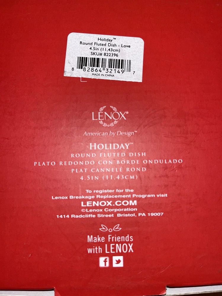 Lennox Holiday - Round Fluted Bowl - Love - NIB Excellent Condition For Gifting