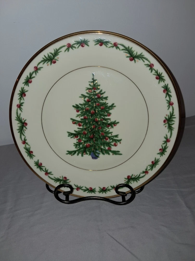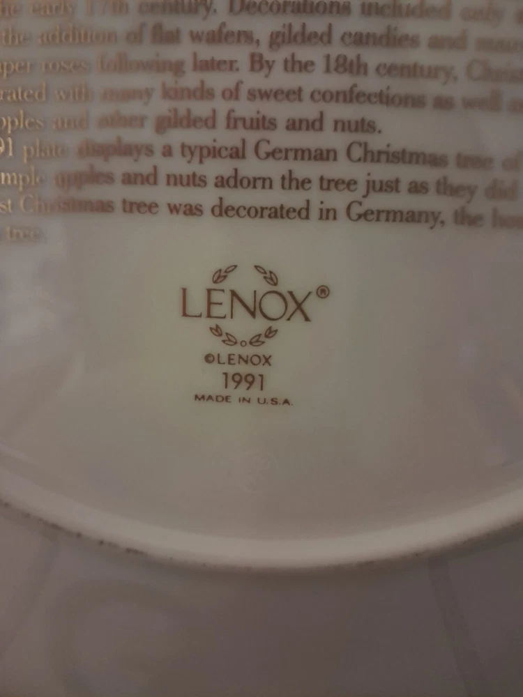 Good pre-owned condition. Lenox 1991 Christmas Trees Around the World plate. Featuring Germany. Gold rimmed around the plate. Please inquire if you need the plate measurements. Smoke free, pet friendly home. 111-1