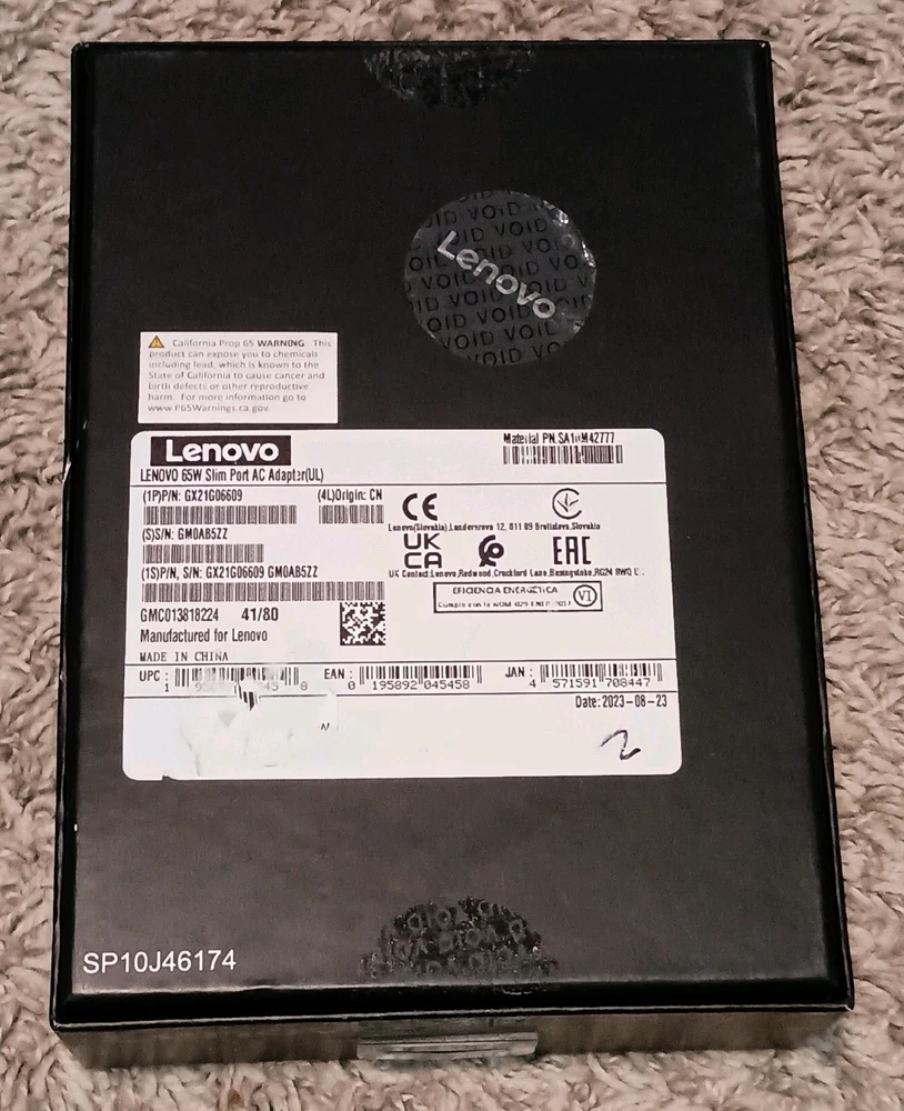 Lenovo 65W Slim Port AC Adapter Compact Travel Design Electronics Computers