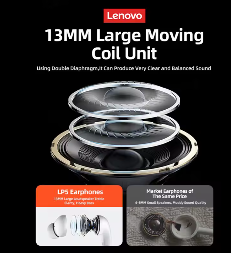 Lenovo LP5 Wireless Bluetooth Earbuds Stereo HiFi Music Earphones Headphones Sports Waterproof TWS Headset With Mic Earbuds New