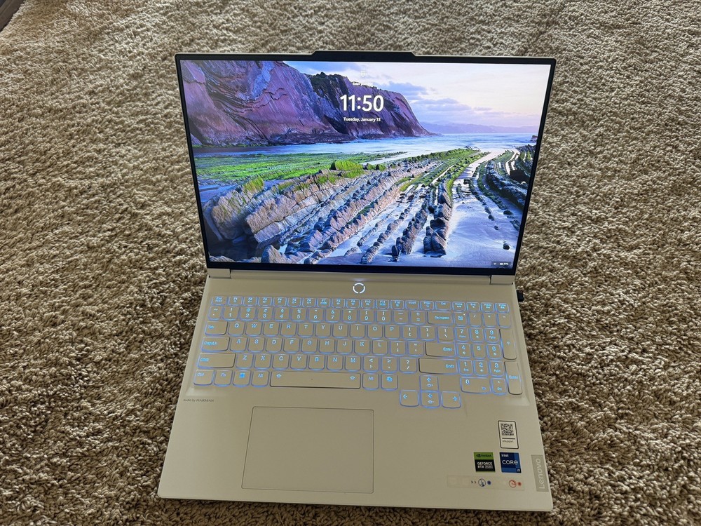 The Lenovo Legion 7i 16" Laptop is a high-performance gaming laptop equipped with an Intel 14th Gen Core i9 processor, 32GB of memory, and an NVIDIA GeForce RTX 4070 dedicated graphics card. With a sleek design in Glacier White color, this laptop offers a seamless gaming experience with its 2560 x 1600 resolution display and Windows 11 Home operating system. The laptop also features an SSD with 1000GB capacity, HDMI connectivity, Bluetooth, and Wi-Fi capabilities, making it ideal for gamers looking for a powerful and reliable device for their gaming setup. Lightly used. Minor scratches on top and small dimple indention.