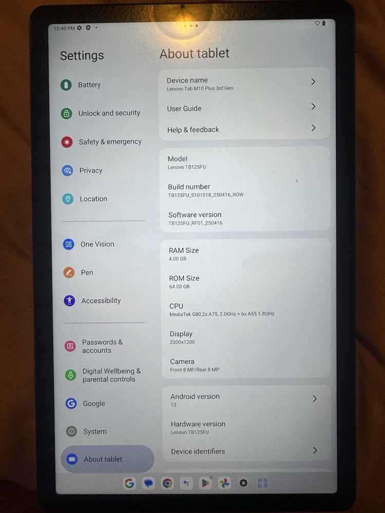 The Lenovo Tab M10 Plus 3rd Gen 64GB is a versatile and high-performing tablet designed for both productivity and entertainment. With 64GB of storage, users have ample space for storing files, apps, and multimedia content. The tablet runs on a reliable operating system and is equipped with a powerful processor, ensuring smooth performance for tasks and gaming. Featuring a sleek and modern design, the Lenovo Tab M10 Plus is a great choice for those looking for a reliable and feature-rich tablet for everyday use.