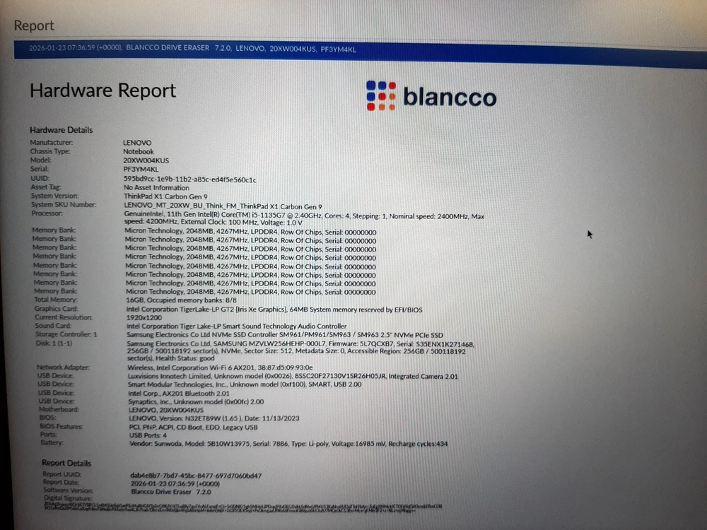 Most items ship free All items ship fast Store Home about Feedback Shop by Category PCs Apple Laptops Monitors Memory CPU/Processors Hard Drives Components Printers Electronics Servers Server Parts Scanners Network Telephone Equipment item Description Lenovo ThinkPad X1 Carbon i5-1135G7 2.40GHz 16GB RAM 256GB NVMe No AC C4*140 This listing is for the following item: Lenovo ThinkPad X1 Carbon Gen 9 i5-1135G7, 2.40GHz 16GB RAM, 256GB NVMe Intel Iris XE Graphics 14.0" 1920x1080, Built in Webcam Not loaded with an OS. Does not include AC Adapter Condition:This laptop is in good working condition, light wear and tear on case. Bottom cover is missing two rubber feet. Screen has no major defects, please see all pictures. There is no Operating System loaded on this unit. Unit has a built in webcam. Does not include AC Adapter. Battery is not fully tested. We do not know the history of this item. Picture is of the actual item listed. Keytek - R2v3 - Cat F3 - Key Functions working Auction Policies Shipping We ship daily using USPS or FedEx Ground & insurance is added to all items at no additional charge. We do NOT ship to PO Boxes, APO or International addresses. We ship only to the lower 48 states, no exceptions. We do NOT ship to Hawaii, Alaska, PR, or Canada. Please email if you are unsure about our shipping conditions prior to placing a bid or making a purchase. Tracking will be available after package is processed. Note: Please check eBay or your spam box before inquiring about tracking. Please email with any questions. returns Issues or problems with your purchase? Please email within 30 days of receipt for return instructions. We will replace the item if possible, or refund in full for any defective returns. Please do your own research before purchase to ensure the item will work for you. If you have any other questions, please feel free to email us.