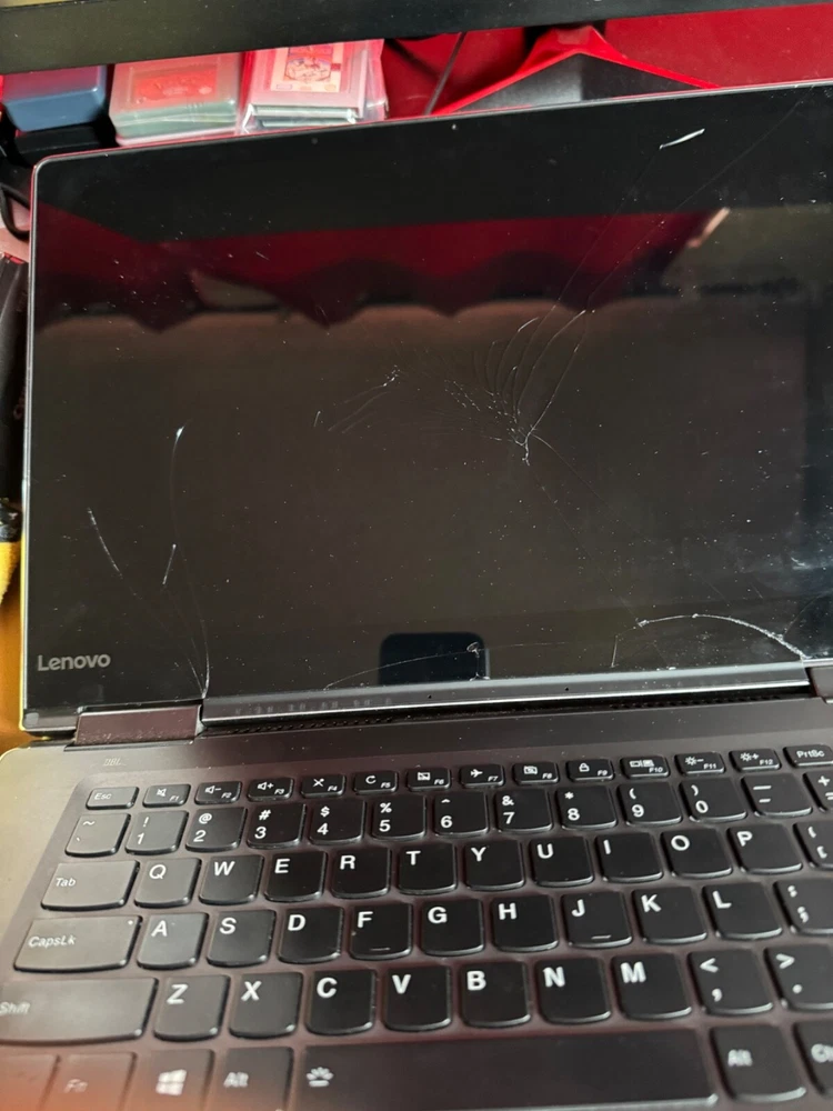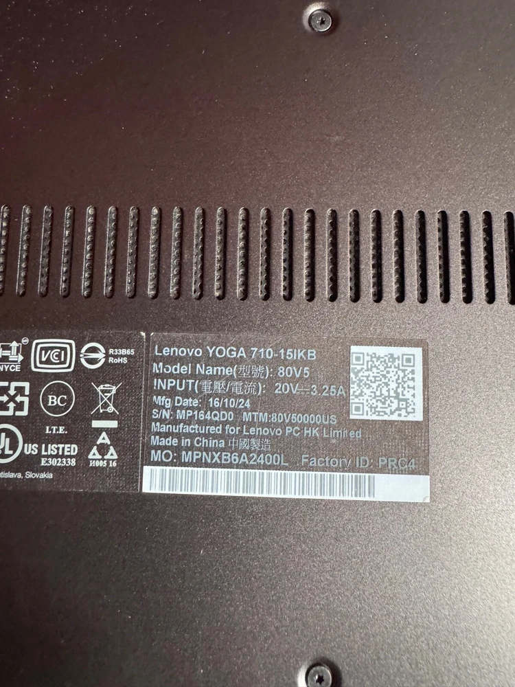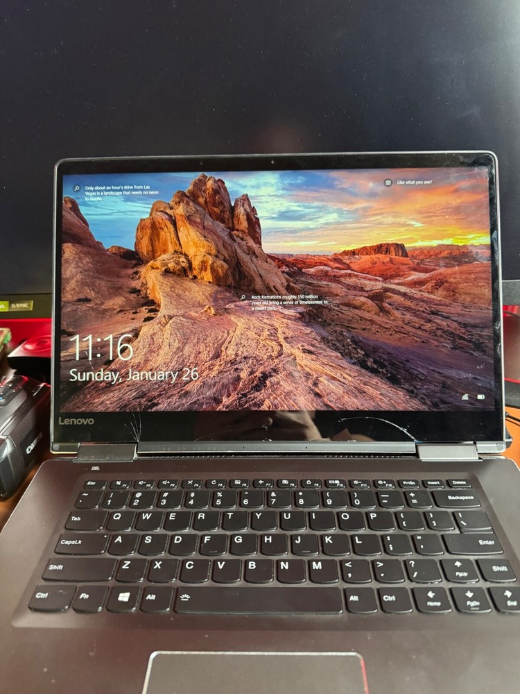 The Lenovo Yoga 710-15IKB is a 15.6" notebook/laptop from the Yoga series, released in 2018. It features an i5-7200U processor with a speed of 2.50 GHz, 8 GB of RAM, and a 256 GB SSD for storage. The laptop has a maximum resolution of 1920 x 1080 and operates on Windows 10 home. READ DESCRIPTION THE LAPTOP WORKS FINE THE ONLY ISSUE IS THE SCREEN HAS A CRACK THAT CAN BE SEEN CLEARLY ON THE PICTURES BUT STILL WORKS FINE WITHOUT MESSING WITH THE RESOLUTION IM GIVING A PAIR OF AIRPODS WITH LAPTOP IF YOU HAVE ANY QUESTIONS FEEL FREE TO MESSAGE ME