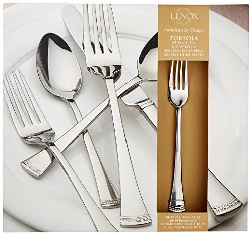 At Lenox, we strive to make the daily moments in your life a bit more special. Inspired by heritage and designed for now, we bring a rich history of craftsmanship to modern day life. We’ve been a part of homes for over 130 years. Each time you buy Lenox, you are buying a versatile and timeless piece crafted with our century-long commitment to quality, artistry and beauty. Whether you’re gathering the family for dinner, grabbing a midnight snack for yourself in front of the TV or having friends over, Lenox is for real moments that last on products that are meant for living. The Portola 65-piece Flatware Set by Lenox features flared handles with a beaded channel at each base. Crafted from brilliant 18/10 stainless steel, this elaborate and silverware set includes twelve dinner forks, salad forks, dinner knives, tablespoons, and teaspoons, in addition to a serving spoon, pierced serving spoon, sugar spoon, butter knife, and serving fork. WHY IT’S SPECIAL: Lenox's Portola flatware combines sturdy craftsmanship with effortless handling, featuring a slim neck and elegant length for both comfort and style. The flared handles and beaded texture create a pristine finish that enhance any table setting. WHO IT’S FOR: Those seeking stainless steel silverware that adds a touch of elegance and sophistication to everyday meals and special occasions alike. WHAT'S IN THE BOX: Includes a 65-piece flatware set for 12 people, plus a 5-piece serving set. Each of the 12 flatware place settings includes a dinner fork, salad fork, dinner knife, dinner spoon, and teaspoon. Serving set includes a serving spoon, pierced serving spoon, sugar spoon, butter knife, and serving fork. WHAT IT’S MADE OUT OF: The Lenox Portola 65-piece flatware set is made of high-quality 18/10 stainless steel for increased durability and rust-resistance. HOW TO CARE FOR IT: This Lenox flatware is dishwasher safe for added convenience and easy clean up.