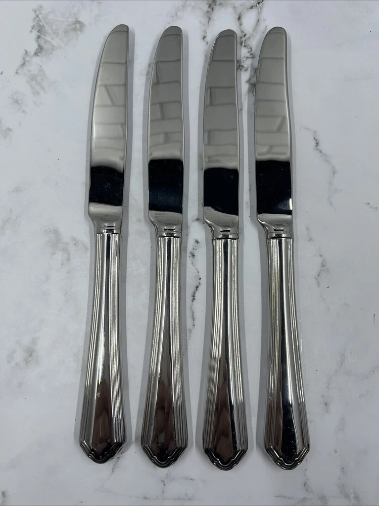 Thank you for looking, message with any questions. This is a set of four Lennox archway ?dinner knives, see photos for condition and length.