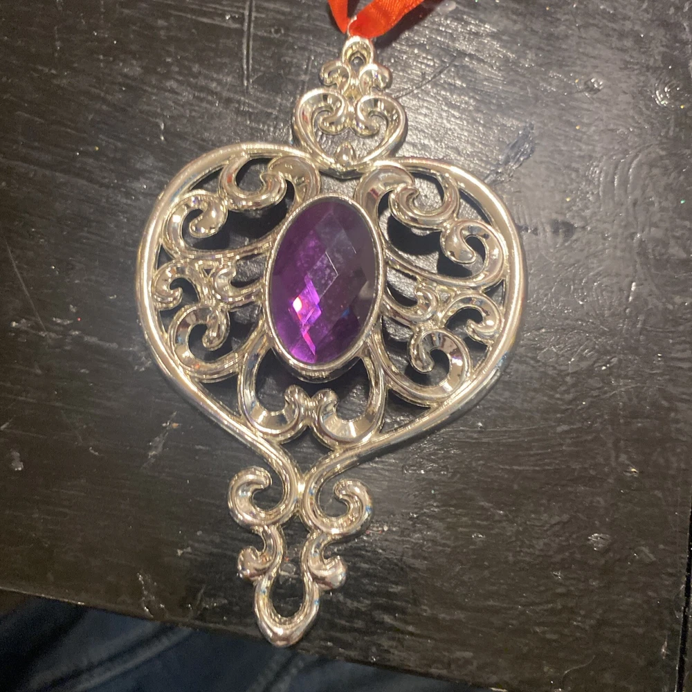 Add a touch of elegance to your holiday decor with this beautiful Lenox American by Design Silverplate Bejeweled Scroll Faceted Purple Crystal ornament. The intricate scroll pattern is highlighted by faceted purple crystals, giving it a dazzling and decorative look that will enhance any Christmas tree or holiday display. This open design ornament is made of silverplate and features hanging capabilities for easy decoration. Perfect for collectors, this ornament is part of the Lenox Ornaments collection and is a great addition to any holiday or seasonal collection. The production technique used to create this piece is silverplate, and it was made in China. Don't miss out on the opportunity to add this beautiful and unique ornament to your holiday decor.