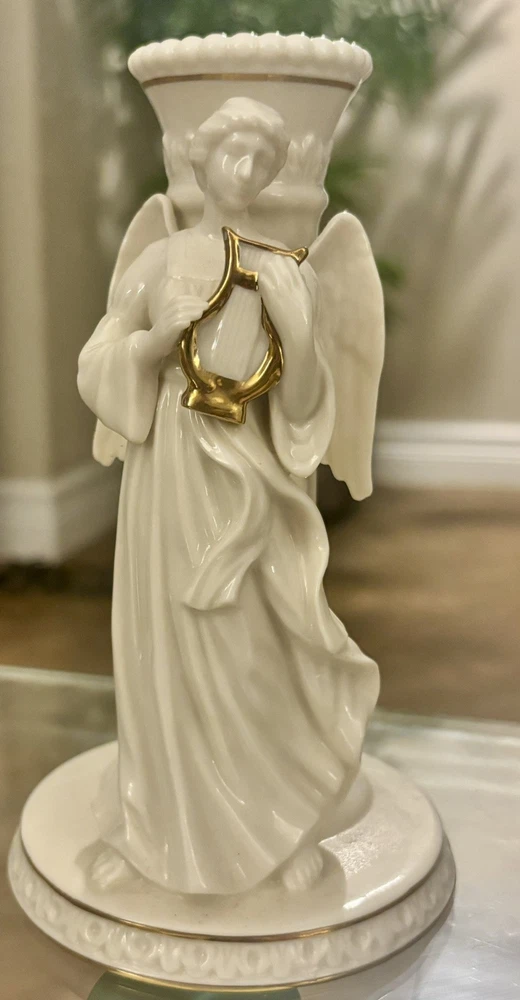 “Lenox Candlestick Angel Holding the Harp”. This beautiful piece has no chips or cracks. It’s in very nice condition. It’s had one owner, my mother. She took very good care of her beloved Lenox pieces. * No box. I use all new packing materials. Your item will be bubble wrapped . Packing peanuts will also be used to ensure that your item arrives safely.