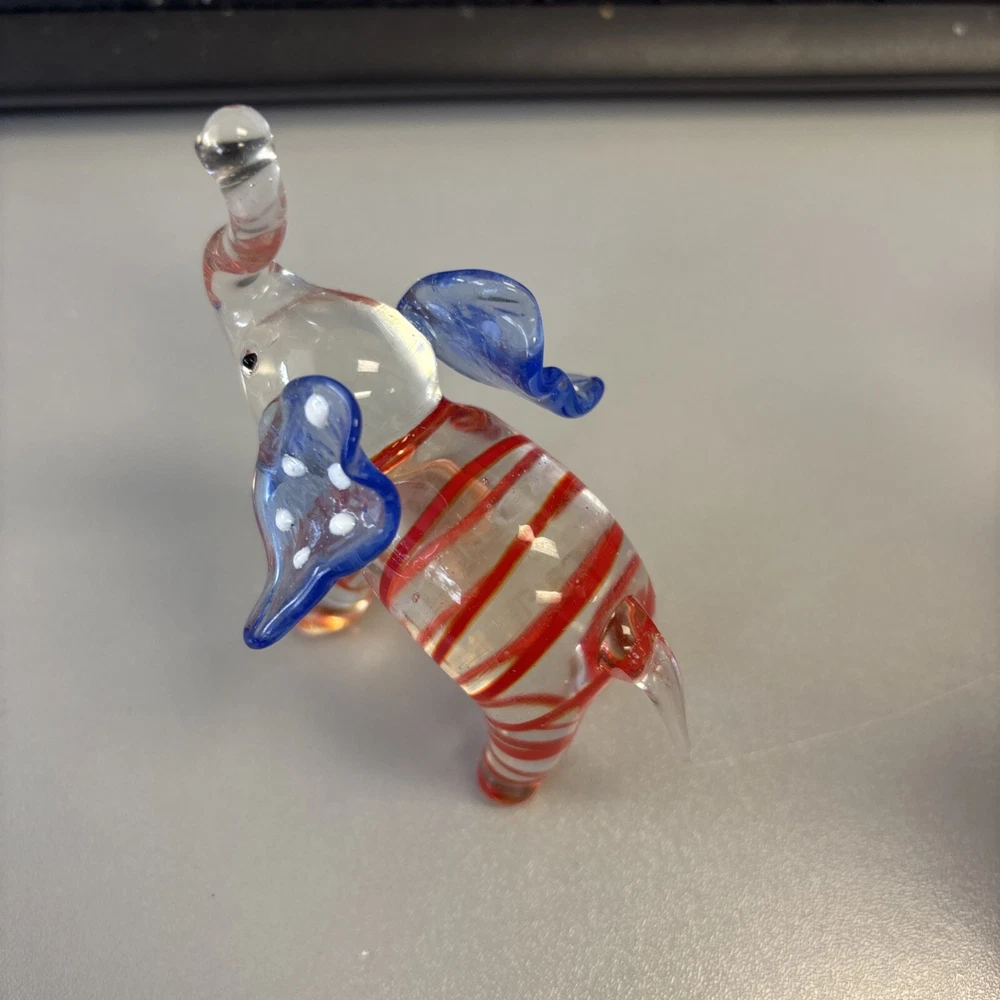 This Lenox Art Glass figurine is a stunning piece that will add elegance to any collection. Crafted from high-quality glass, this figurine features a beautiful American flag trunk up elephant design. The intricate details and exquisite artistry make this a must-have for any collector or lover of fine glassware. The elephant subject is beautifully executed, making this a unique and meaningful addition to any home decor. This figurine is perfect for display on a shelf, desk, or table, and will surely be a conversation starter.