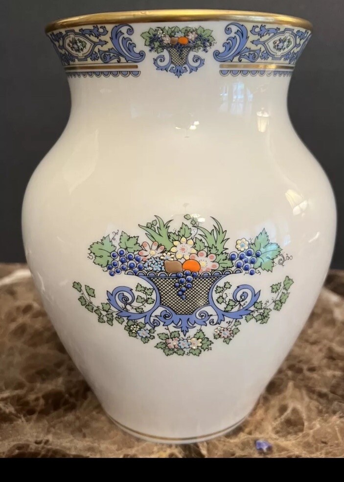 This beautiful Lenox China vase is a must-have for any collector or decorator. The vase is made of porcelain and features a stunning floral pattern with 24K gold trim and raised enamel decor. Measuring 8 inches tall and 5 inches wide, this medium-sized vase is perfect for displaying flowers or other decorative items. The vase is an original piece from the 1990s and was made in the United States. It is in excellent condition and is perfect for all occasions. The vase is signed by the artist and is an original piece. Don't miss your chance to own this beautiful vase!
