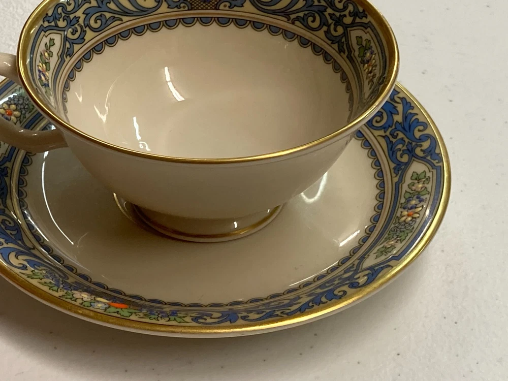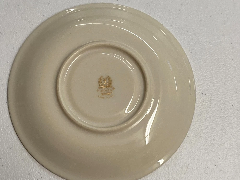 Lenox Autumn Footed Tea Cup w/ Saucer 24Kt Trim Ivory Bone China USA Gold Stamp good lightly used shape as shown no chips or cracks **US Shipping Only** w/ tracking number Check out our Store