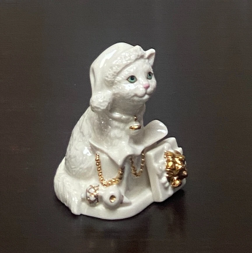 Occasion:ChristmasItem Height:2.75"Seller Notes:“no chips or cracks”Shape:CatCharacter:CatCountry/Region of Manufacture:ChinaPattern:Cat with gift boxSize:SmallSet Includes:OrnamentProduction Technique:PotteryTheme:ChristmasColor:White with goldBrand:LenoxType:Figurine