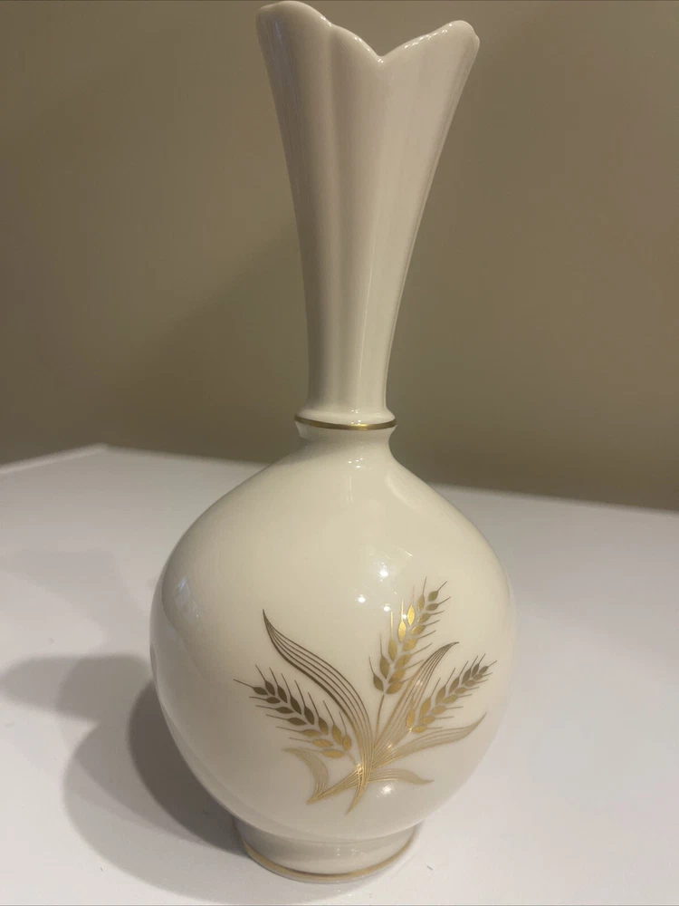 Theme:Does not applyGlassmaking Technique:Does not applyUPC:Does not applyMaterial:PorcelainTime Period Manufactured:1920-1949Features:Does not applyModel:Bud VaseFinish:PatternedBrand:LenoxSubject:Harvest WheatPattern:Harvest WheatSize:Small (up to 12in.)gtin13:Does not applyStyle:Mid-Century ModernCountry/Region of Manufacture:United StatesColor:White & GoldNumber in Pack:1Type:VaseShape:RoundDepartment:Adults