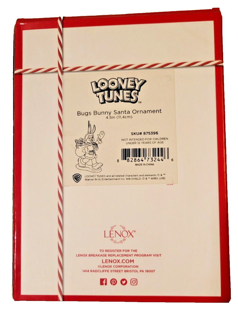 This adorable Lenox ornament brings holiday cheer with Bugs Bunny dressed as Santa! The porcelain craftsmanship is top-notch, with crisp details and bright colors that pop. It’s a must-have for Looney Tunes fans and makes a charming addition to any Christmas tree or collectible display. The box keeps it pristine, making it perfect for gifting too. A festive treasure that’ll bring smiles for years!
