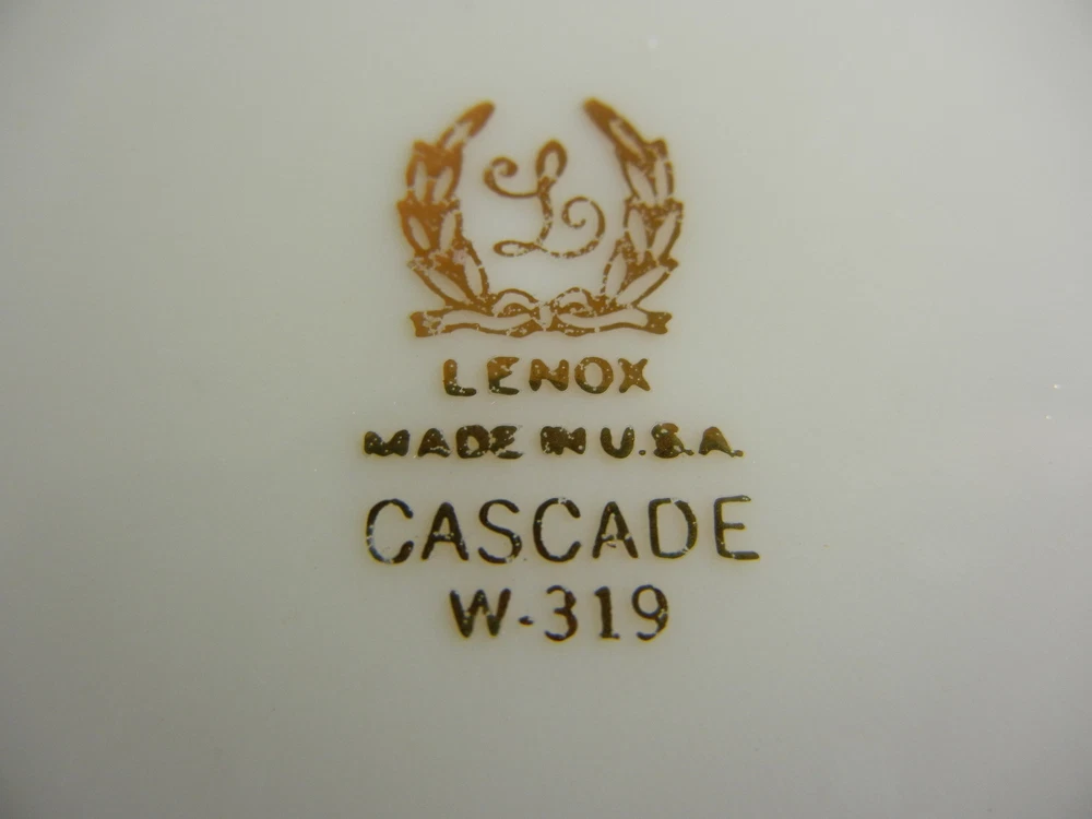 Manufacturer: Lenox China - Made in America Pattern: Cascade - Pattern W319 - Gold Trim Item: Dinner plate Size: 10 1/4" diameter Condition: Excellent Shipping for domestic and Canadian rates can be found in the item description. We will ship international and rates will be determined by location.
