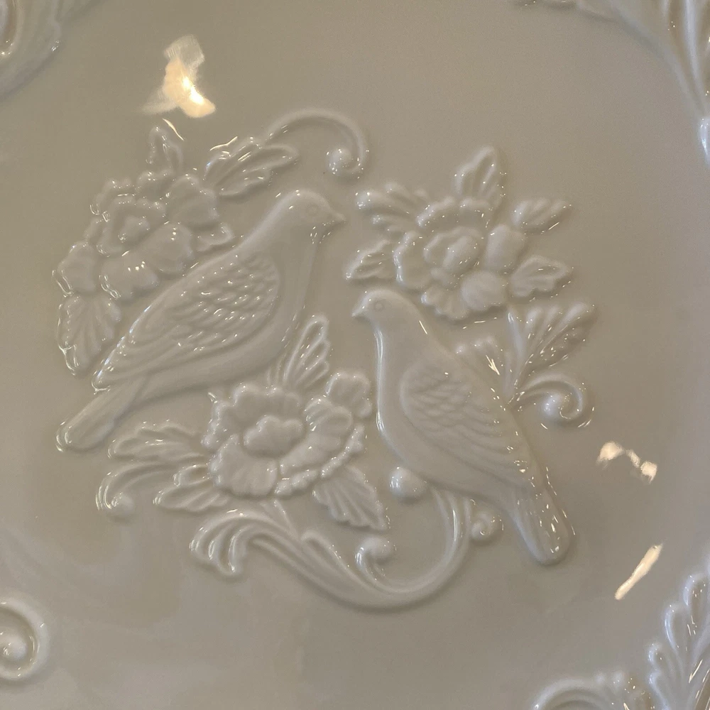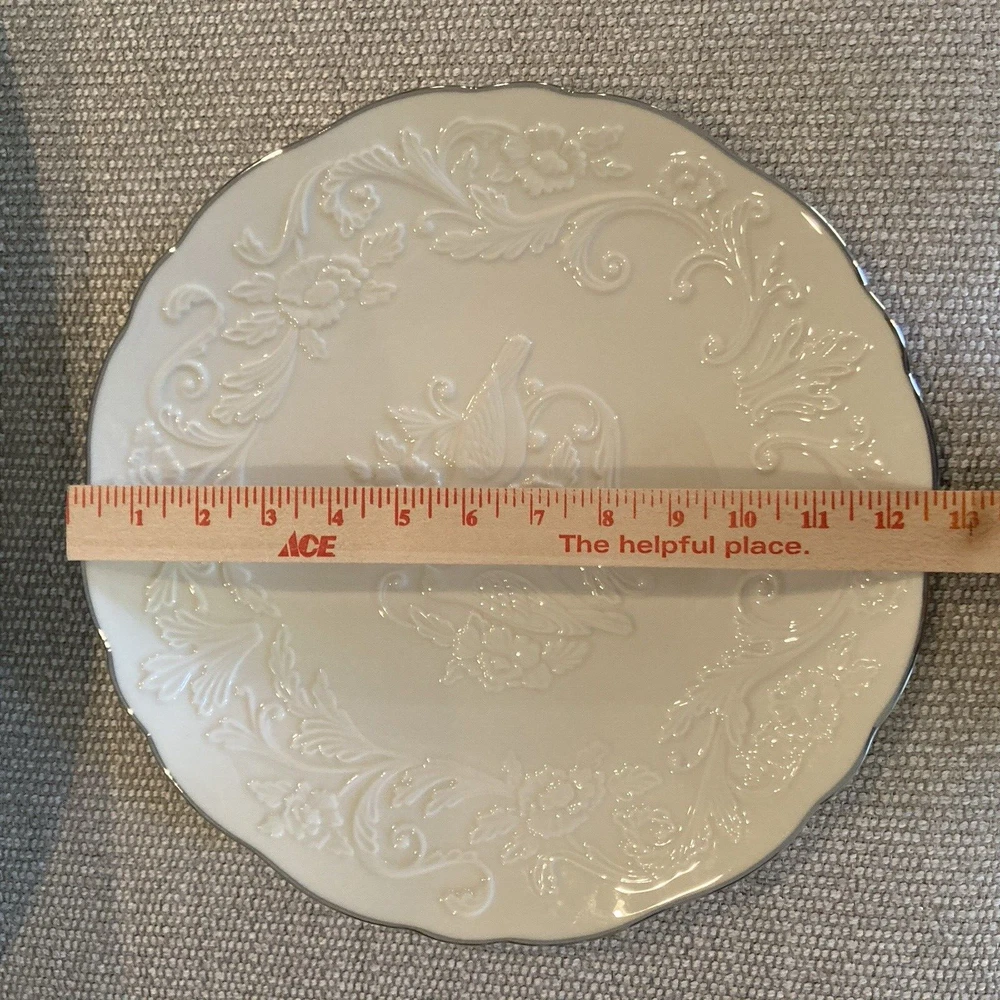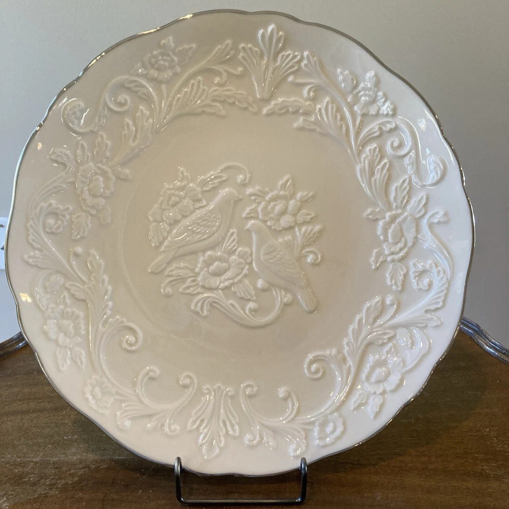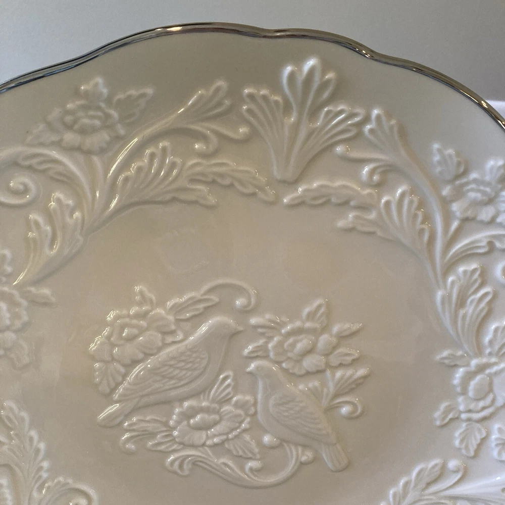 Lenox China Anniversary Plate Ivory Silver Rim 12.5" Lovebirds Peonies Made USA