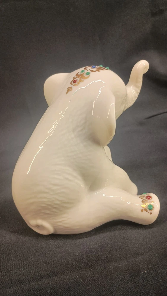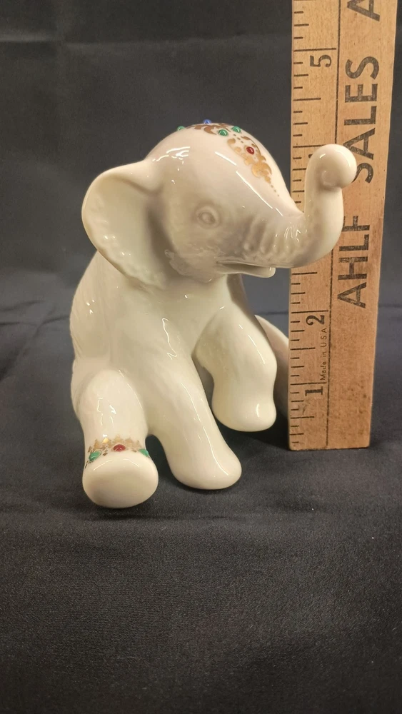 The Lenox China Jewels Collection Sitting Elephant Figurine was manufactured in the United States in 1992. Made of porcelain, this figurine features a gold finish adorned with jeweled enamel accents. Measuring 4.75 inches in length, 4.25 inches in height, and 4 inches in width, it weighs 7.7 ounces and is part of the Animals collection by Lenox. This figurine depicts a charming elephant, adding a touch of elegance and whimsy to any decor with its intricate detailing. Thank you for visiting my listing today and thank you for your interest in this item! My goal is to have a pleasant transaction resulting in a satisfied customer. I hope any transaction between us leaves you with a feeling of confidence knowing you can trust me and the items I offer here. *Most if not all my listings are set to accept offers. Feel free to send an offer and I will be happy to consider it!! *Please contact me with any questions or concerns and I will be happy to help. *Always examine the photos carefully, and if in doubt, email me with any questions you may have. *Please note that condition statements are offered as a guide only. They will always be somewhat subjective and reflect our opinion, which may not necessarily agree with someone else's opinion. PLEASE READ: I aim to please and I want my buyers to have a positive transaction with me. If you have questions, concerns, or special requests related to any of my items I hope you will contact me so we can work them out to your satisfaction. I sell my items to give you a great item at a decent price while making a little profit at the same time. If you feel the item you are interested in is too pricey do not hesitate to send me a fair offer and I will consider it. My goal is to satisfy your needs and mine so both parties can benefit. SHIPPING: If you prefer a different shipping method or company please contact me and I will do all I can to make that happen. If you have concerns or requests about the packaging of your item contact me and I will do all I can to accommodate them. Shipping costs are based on location in each state or country, the costs always differ. After I have received your payment I will ship your item out within 3 business days or less excluding weekends and holidays. BEFORE PURCHASING & BIDDING: **Please see all the pictures. I do not have great photography skills but I try to get the most accurate photos I can. If you are unsure about something you see in a photo contact me so I can do what I am able to answer your concern about the item. **I cannot stress enough that if you have any questions or concerns please contact me before purchasing and bidding. Communication can solve so much. **As a customer myself, I understand the meaning of customer satisfaction and my goal is to have nothing but satisfied customers. If you are not unsatisfied with your purchase I ask that you please contact me so I can take care of your issue. My goal is for you to be 100% satisfied. INTERNATIONAL BUYERS WELCOMED - PLEASE NOTE: I welcome International buyers! Please be aware that any custom/duties/taxes that the parcel might incur once it is out of the USA are the responsibility of the buyer. Please check with your country's customs office to determine what these additional costs will be prior to bidding or buying. Please refer to the eBay Site Map for more information if needed.