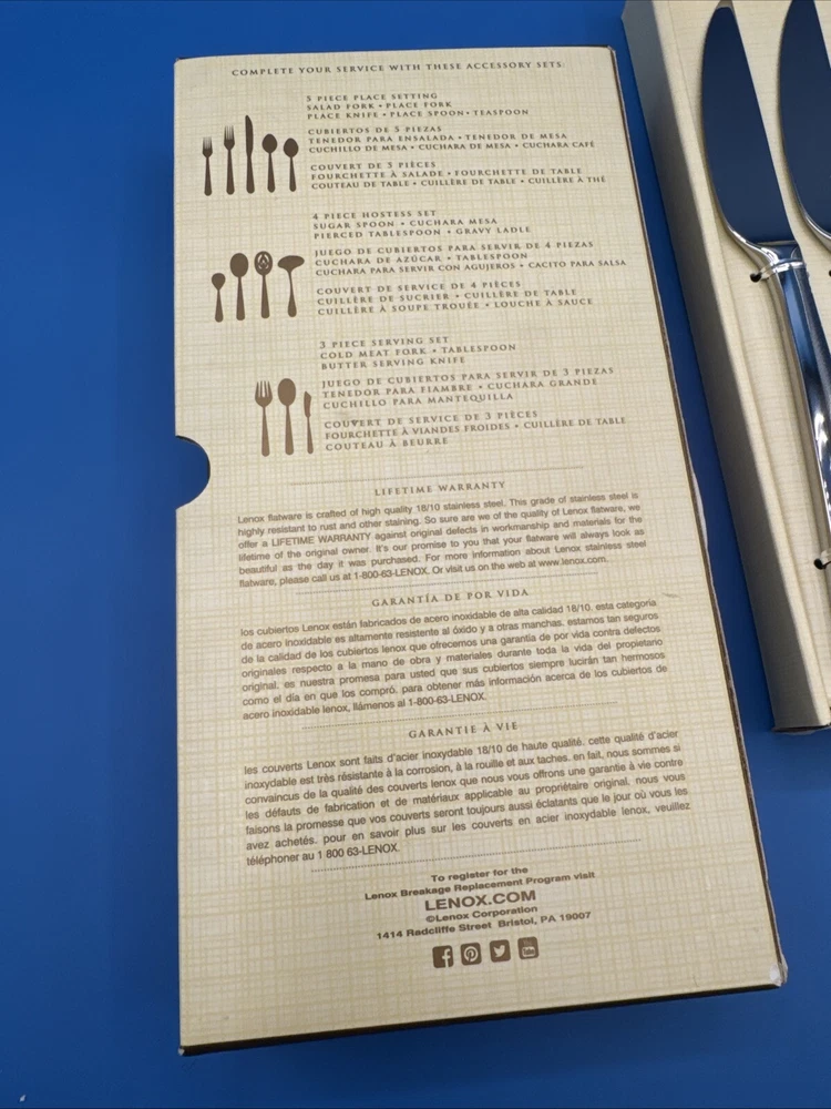 Brand: Lenox Number of Items in Set: 4 Material: Stainless Steel Set Includes: Steak Knife Country/Region of Manufacture: Vietnam Color: Silver Type: Steak Knife