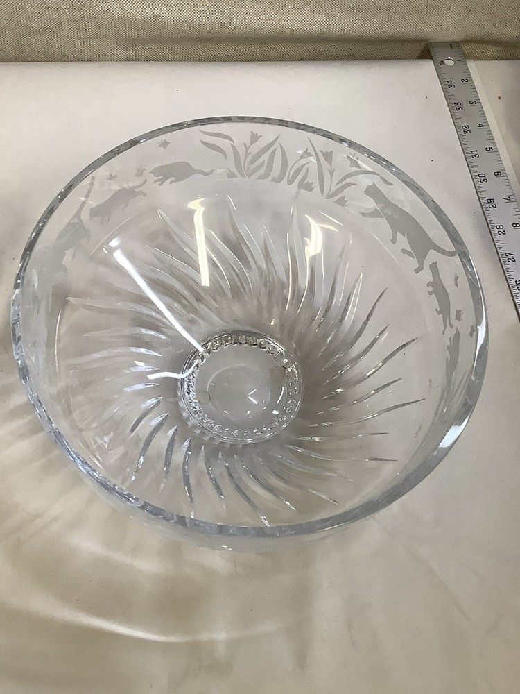 Finish:FrostedFeatures:EtchedBrand:LenoxOccasion:All OccasionsMaterial:CrystalTime Period Manufactured:1960-1969Original/Reproduction:OriginalCountry/Region of Manufacture:UnknownColor:ClearTheme:Animals & DinosaursType:BowlShape:RoundPattern:Cats