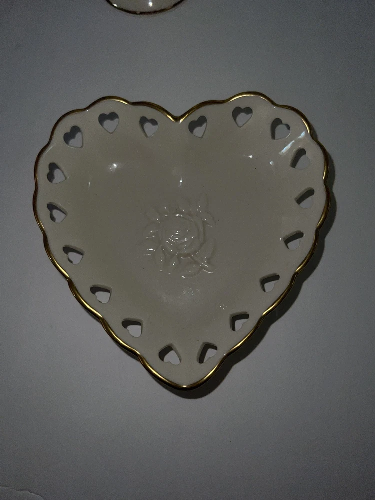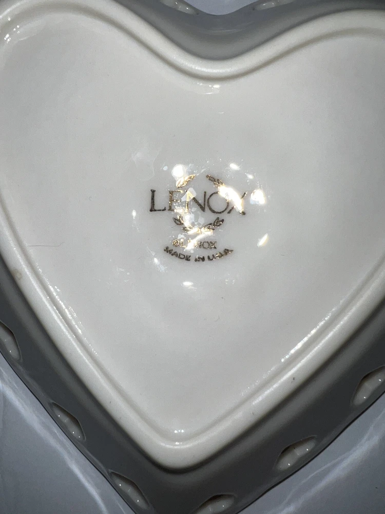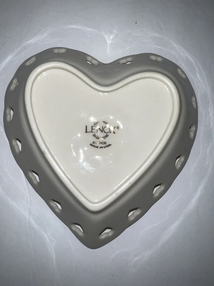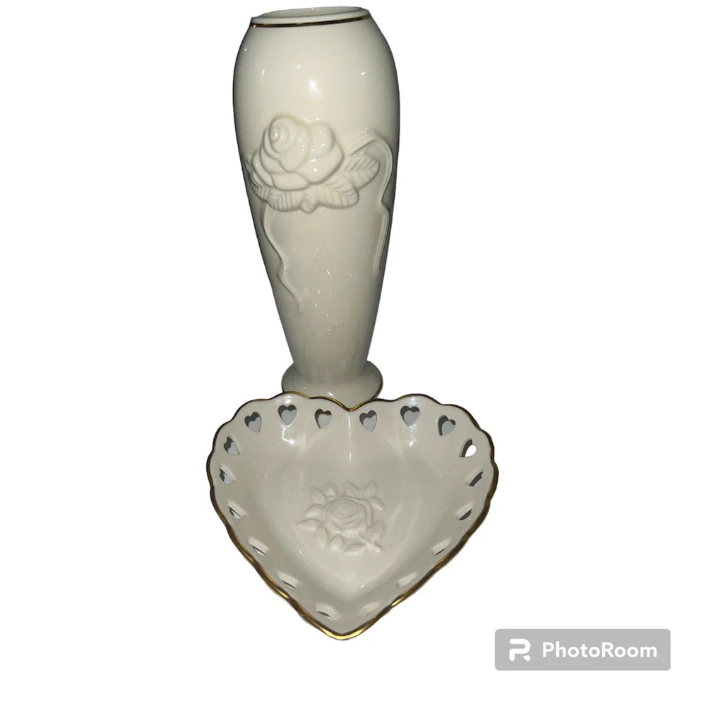 Vintage 2 Piece Set Of Lenox Hearts And Embossed Rose Cream Vase Bowl Set. Bowl made in USA Vase height is 6" made in Thailand.