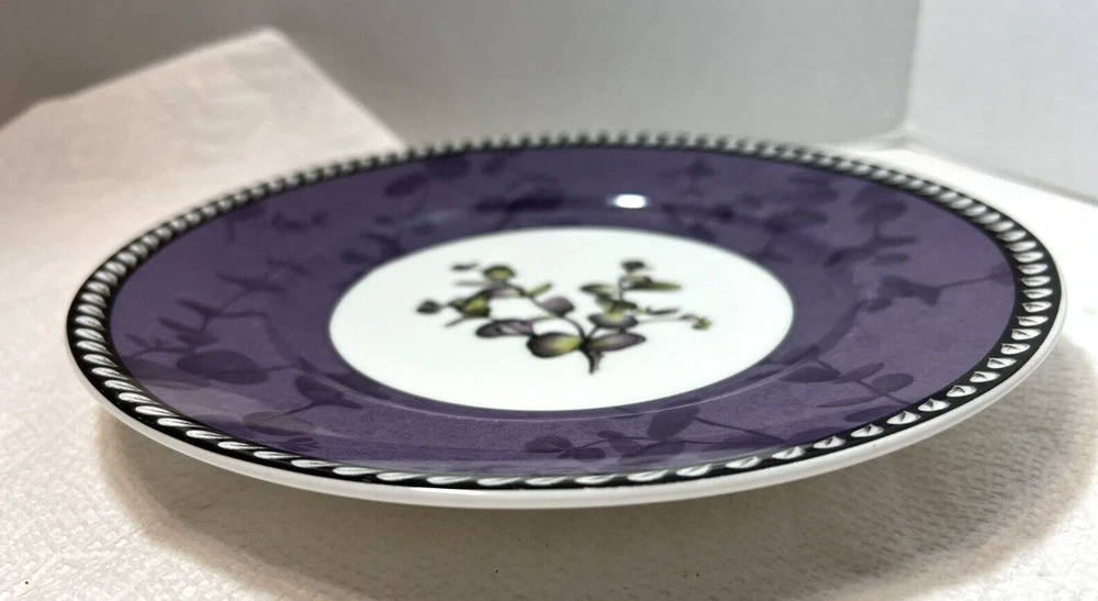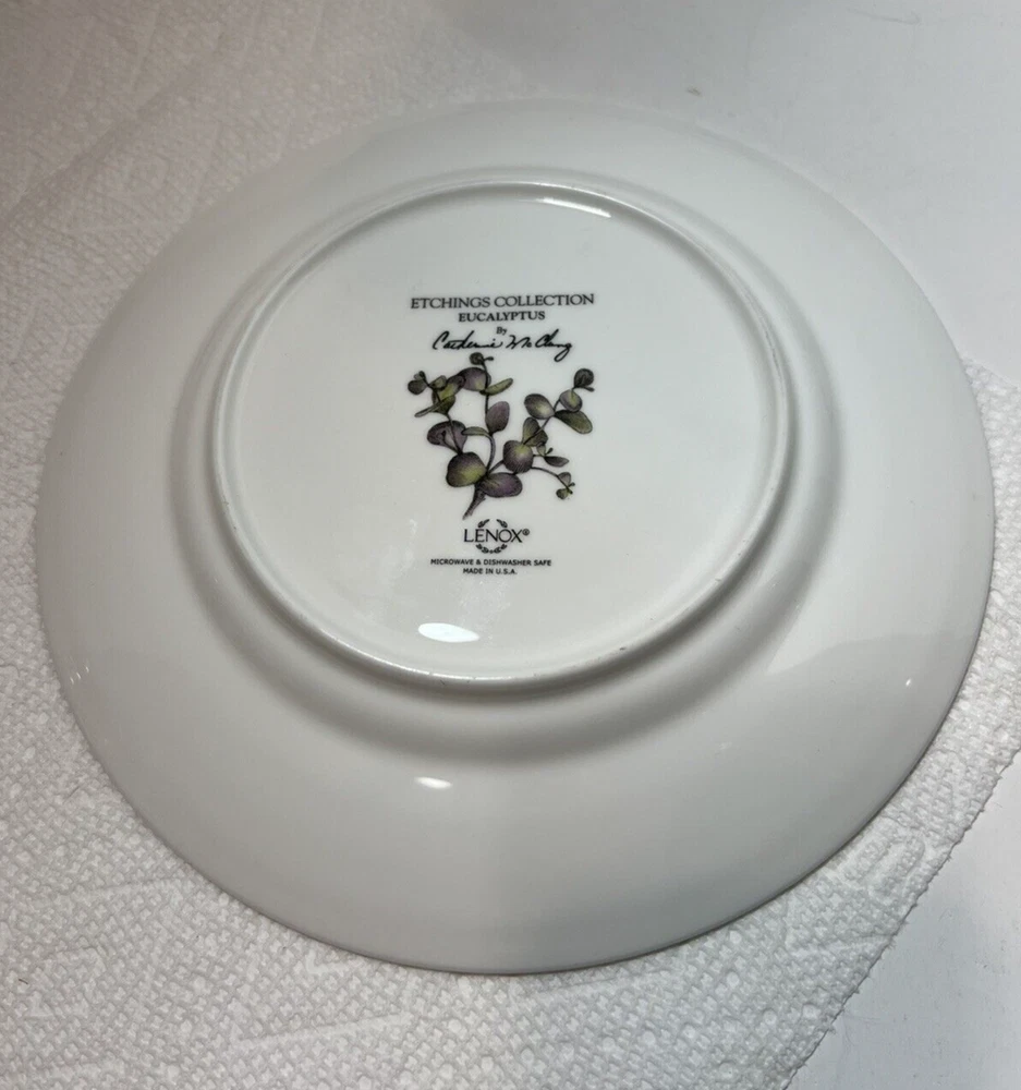 Lenox Etchings Eucalyptus Accent Luncheon Plate Catherine McClurg 9.5 inch In good used condition with no chips or cracks noted but does have some wear around the inner rim. Please see photos and ask for more if needed.