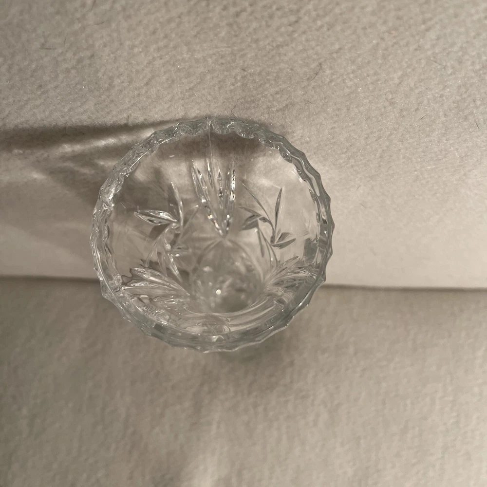 This Lenox Fine Crystal Bud Vase measures 6 inches in height and has a round shape with a swirl star pattern. Made in the Czech Republic in the 1980s, this traditional style vase is crafted from clear crystal with a patterned finish. It is adorned with stars and has a width of 2.5 inches, weighing 12.9 ounces. Perfect for all occasions, this original piece from Lenox is a beautiful and elegant addition to any decorative collection. Excellent condition. No chips or cracks.