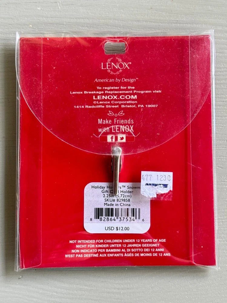This is a Lenox gift card holder in the shape of a snowman. Good condition; Unused.