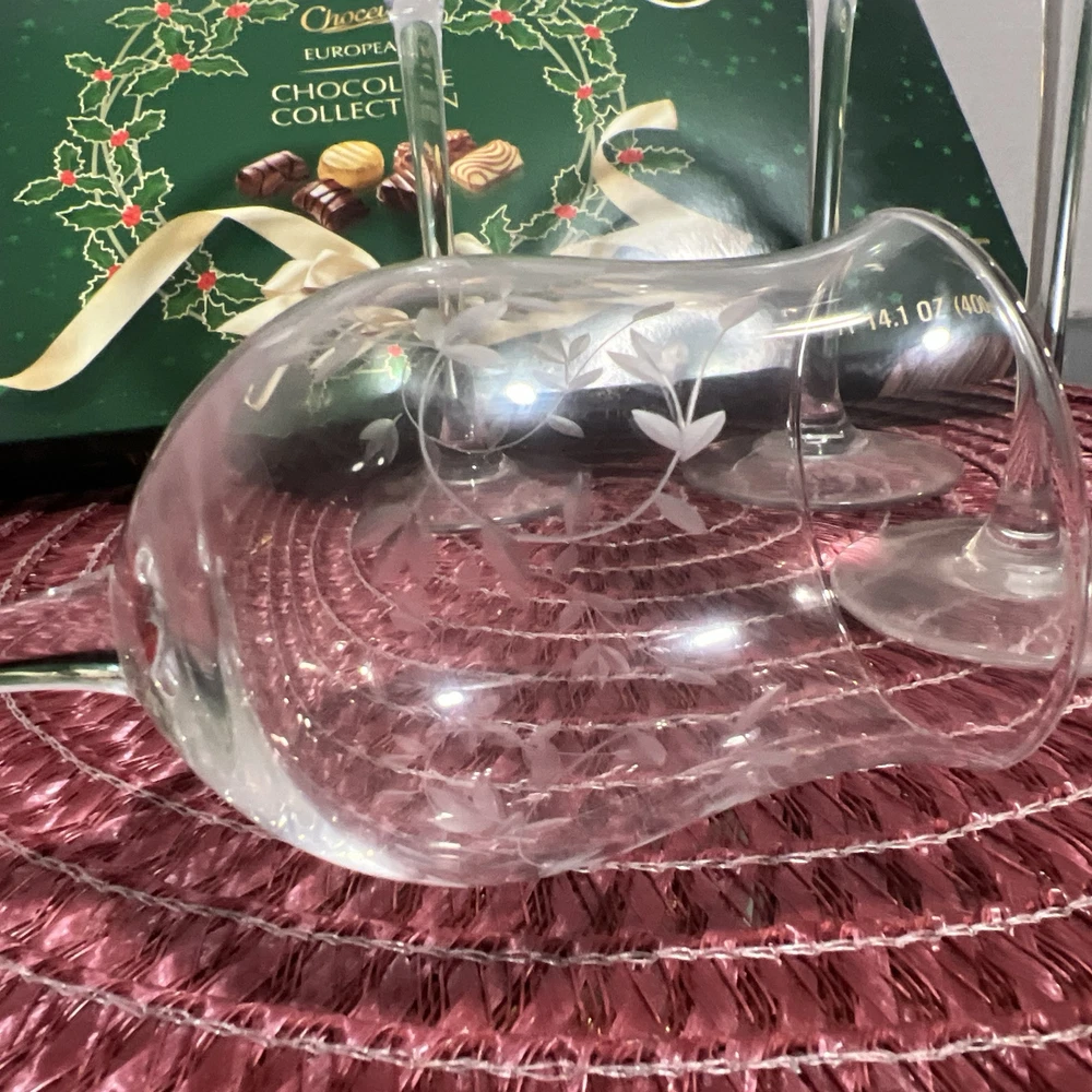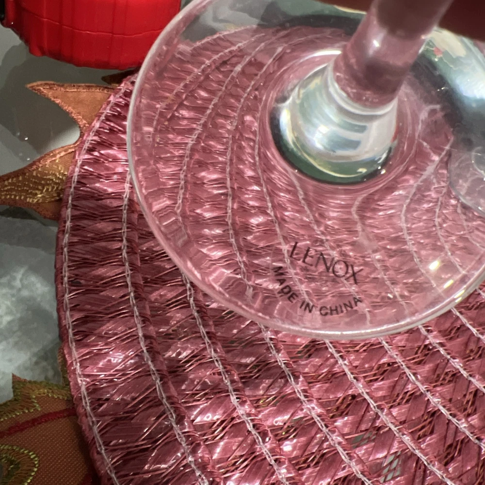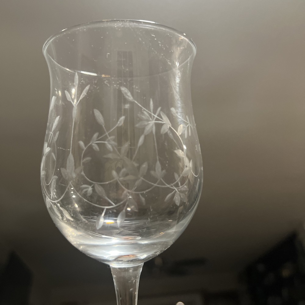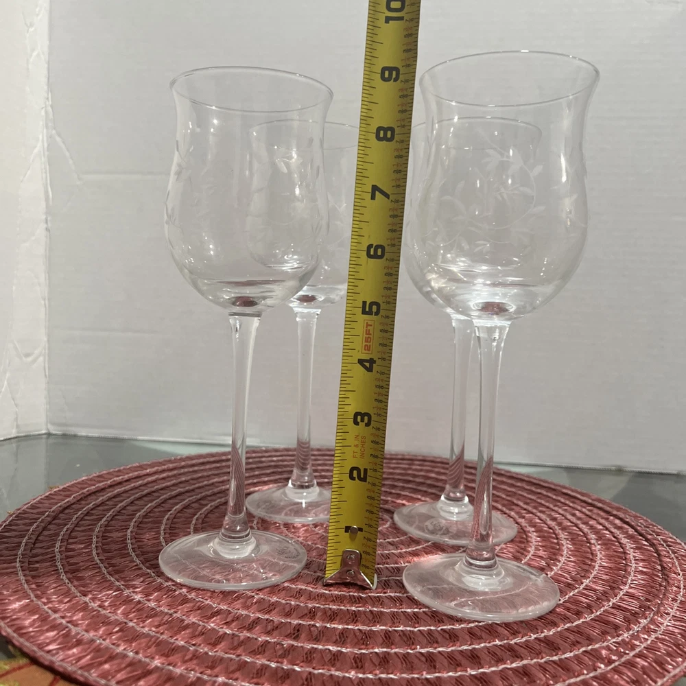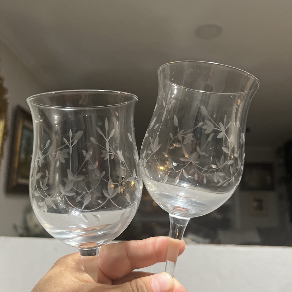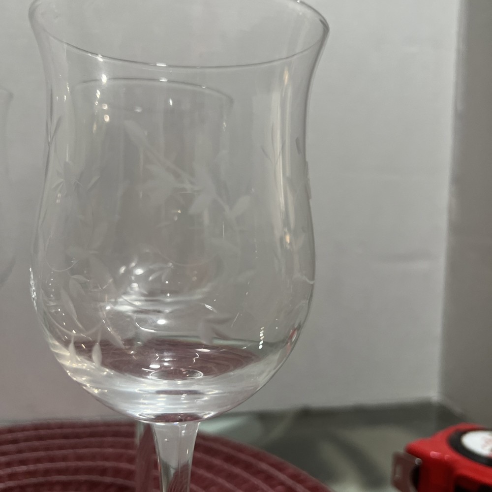 This set of Lenox Heather Tulip Wine Glasses features a four piece design made of clear blown crystal. Each glass is signed, with a smooth stem and measures 8 7/8" tall. The elegant design is perfect for all occasions and showcases a classic Heather pattern. Made in the United States using traditional glassmaking techniques. No chips or cracks , color looks Great Look at the pictures before making your purchase